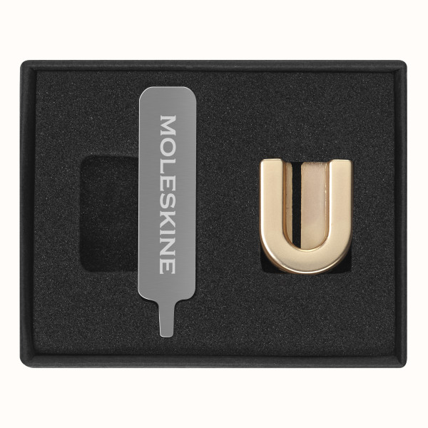 EIGENSCHAFTEN - Farbe: Gold - verwenden Sie die mitgelieferte Metallschraube und den speziellen Schraubenzieher zum Befestigen am Gummiband Ihres Moleskine - aus Zinklegierung hergestellt