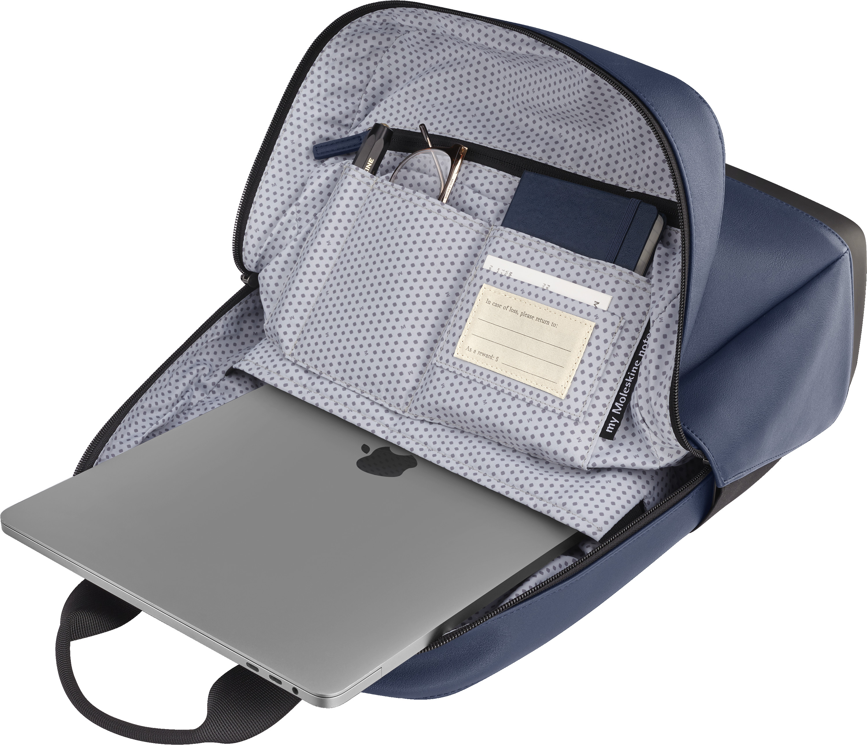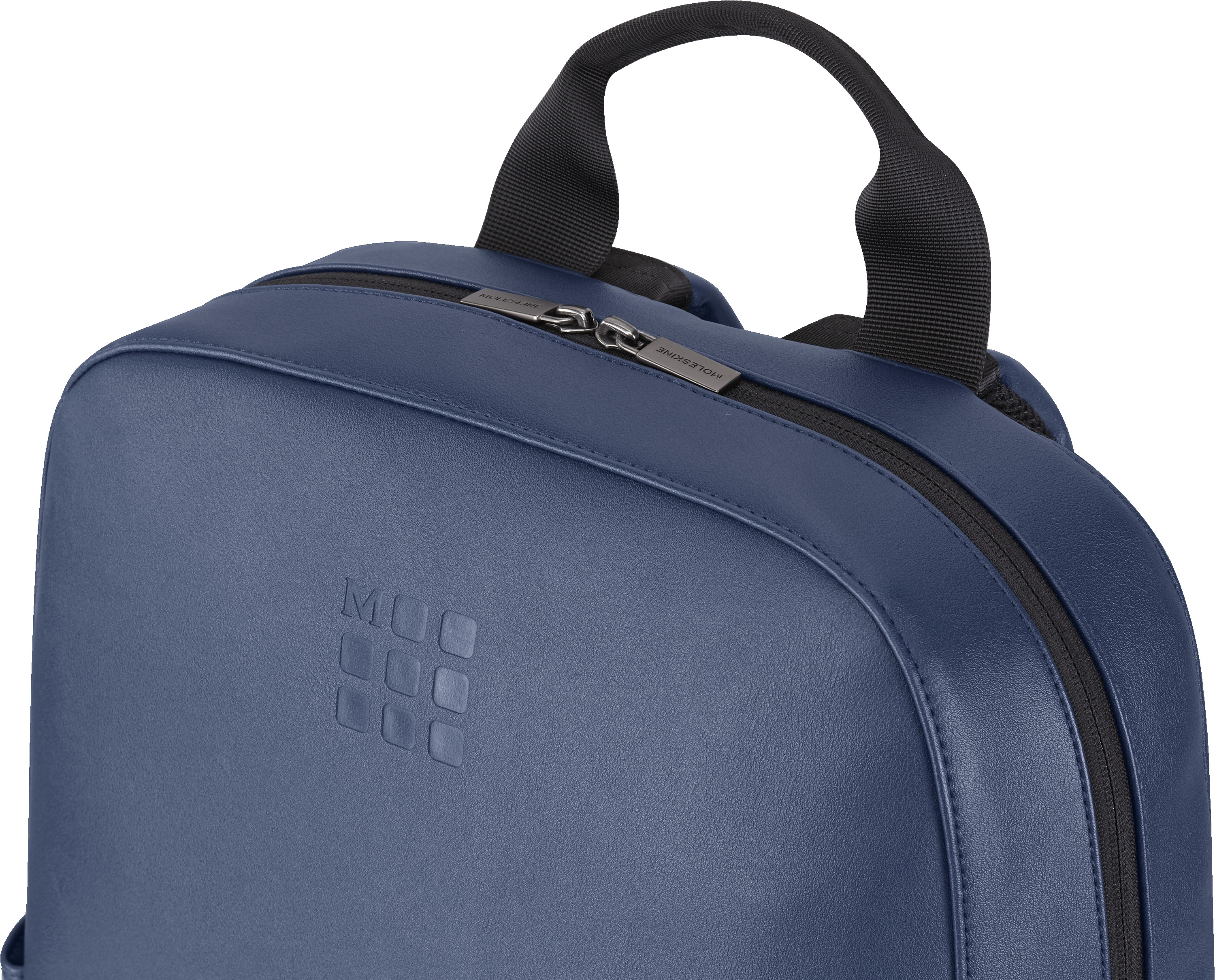 - monogramme en relief sur le devant et tirettes de fermeture éclair avec finition mate de couleur gris acier et logo Moleskine gravé