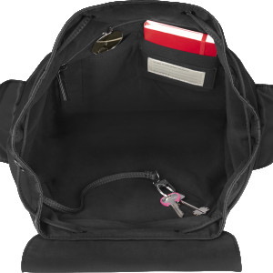 - ein Hauptfach mit Kordeln zum Zusammenziehen und Karabinerhakenverschluss