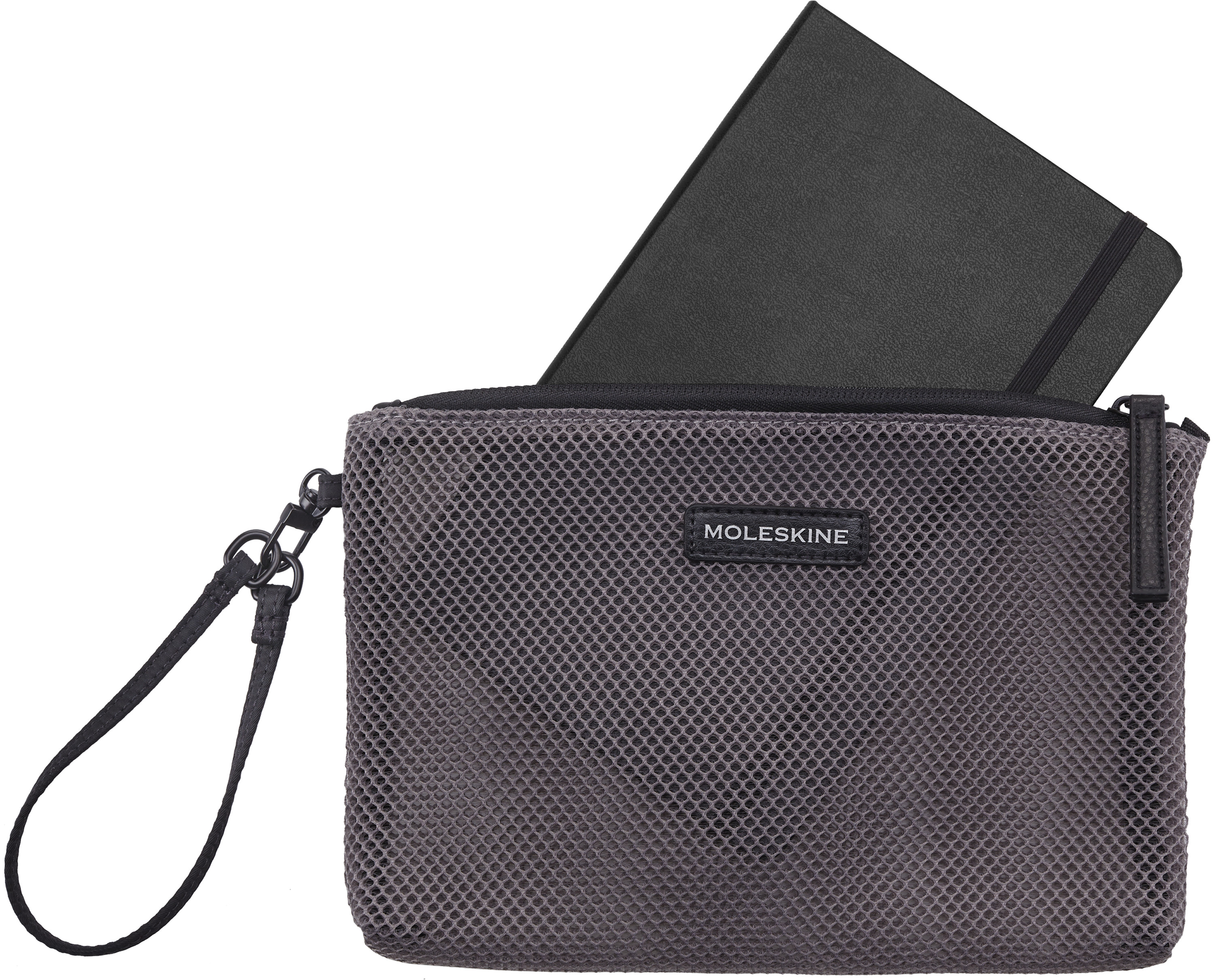 - Netztasche mit Reissverschluss und Handschlaufe: passend für ein Moleskine im Medium Format