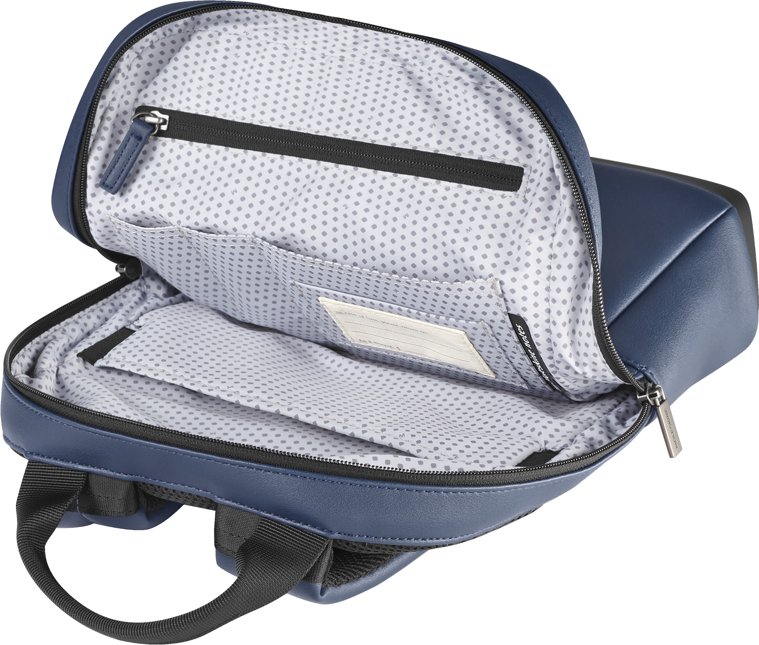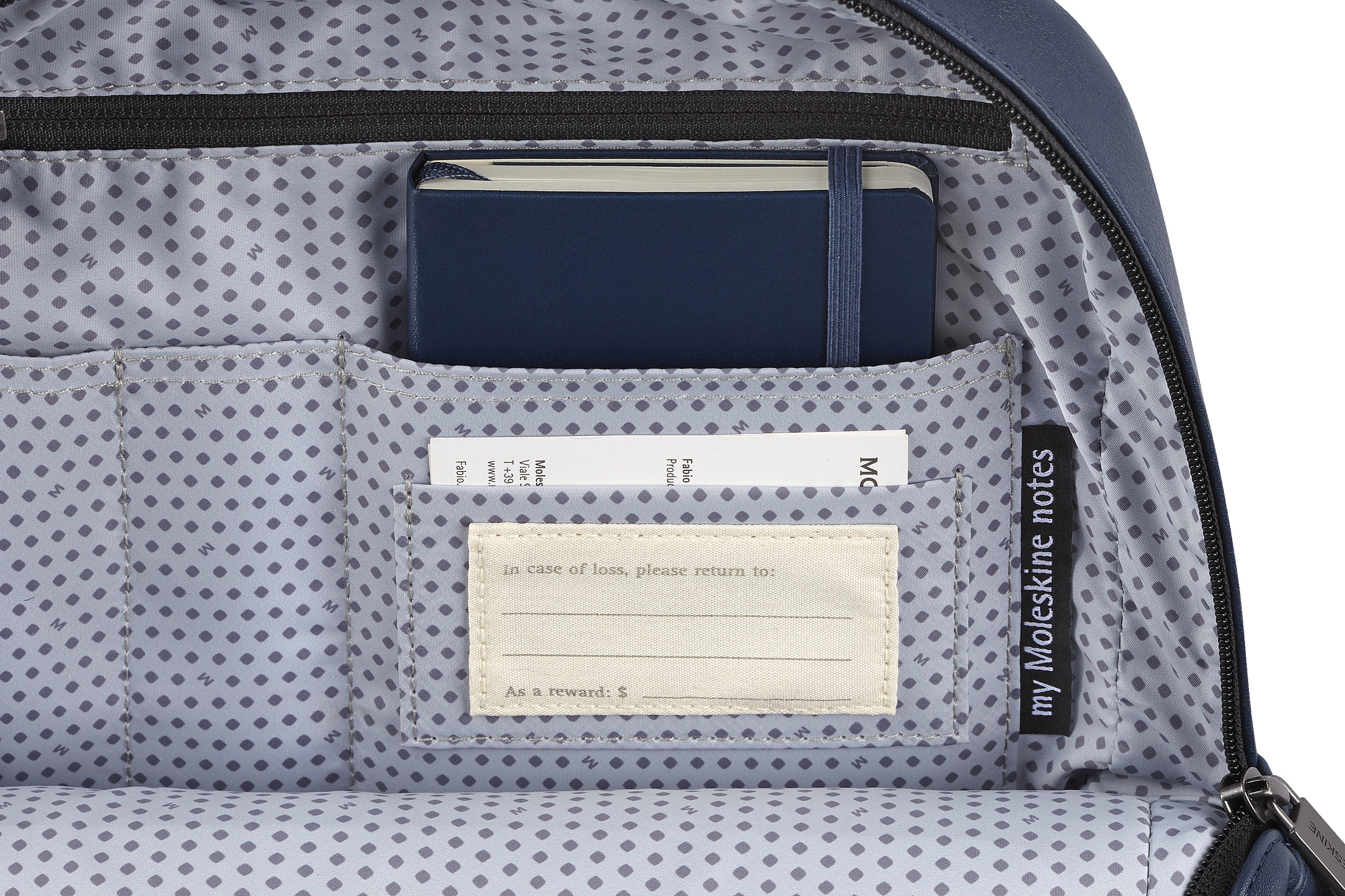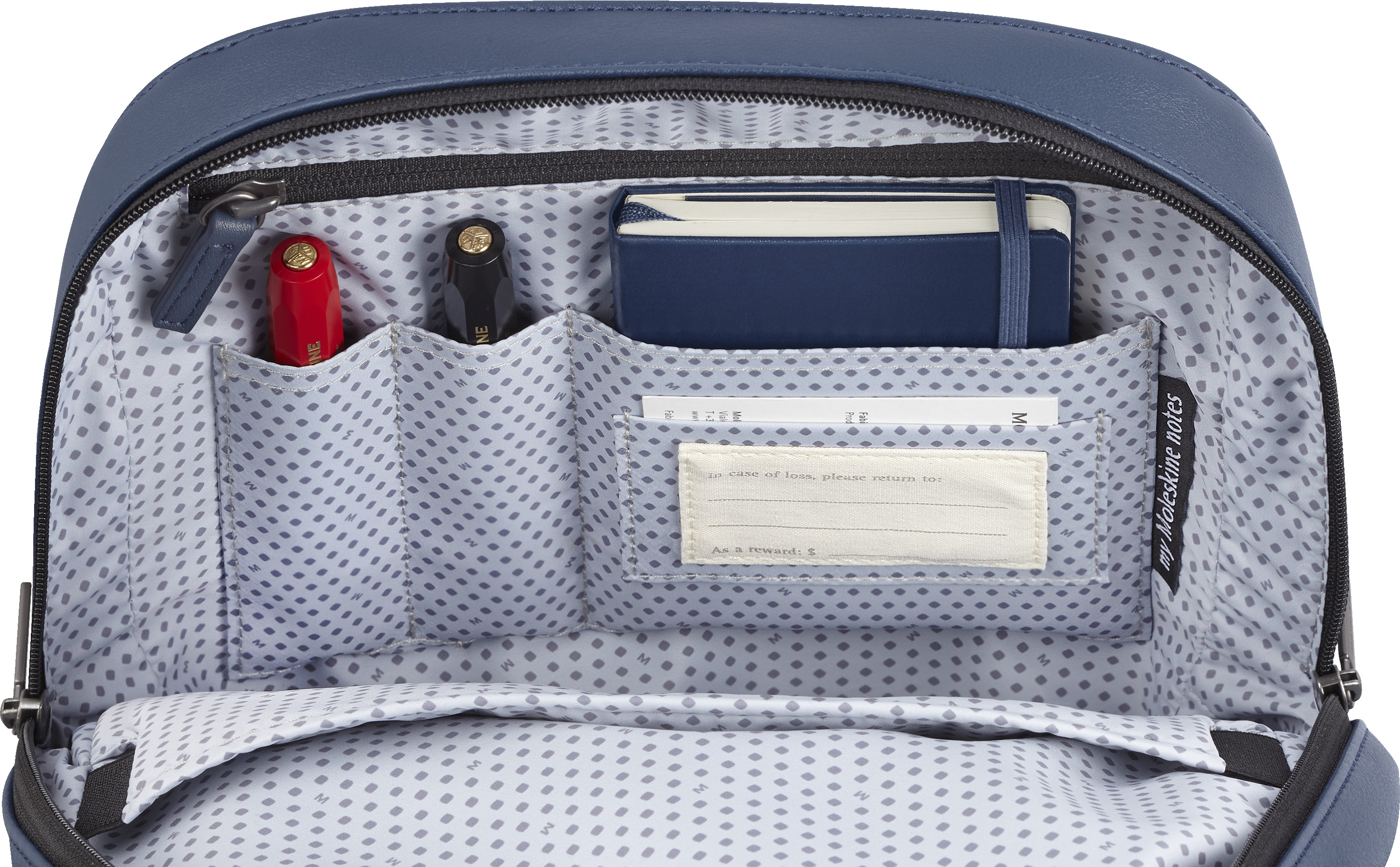 - azurblaues Innenfutter mit Moleskine Muster, damit der Inhalt besser sichtbar ist (100% Polyester)