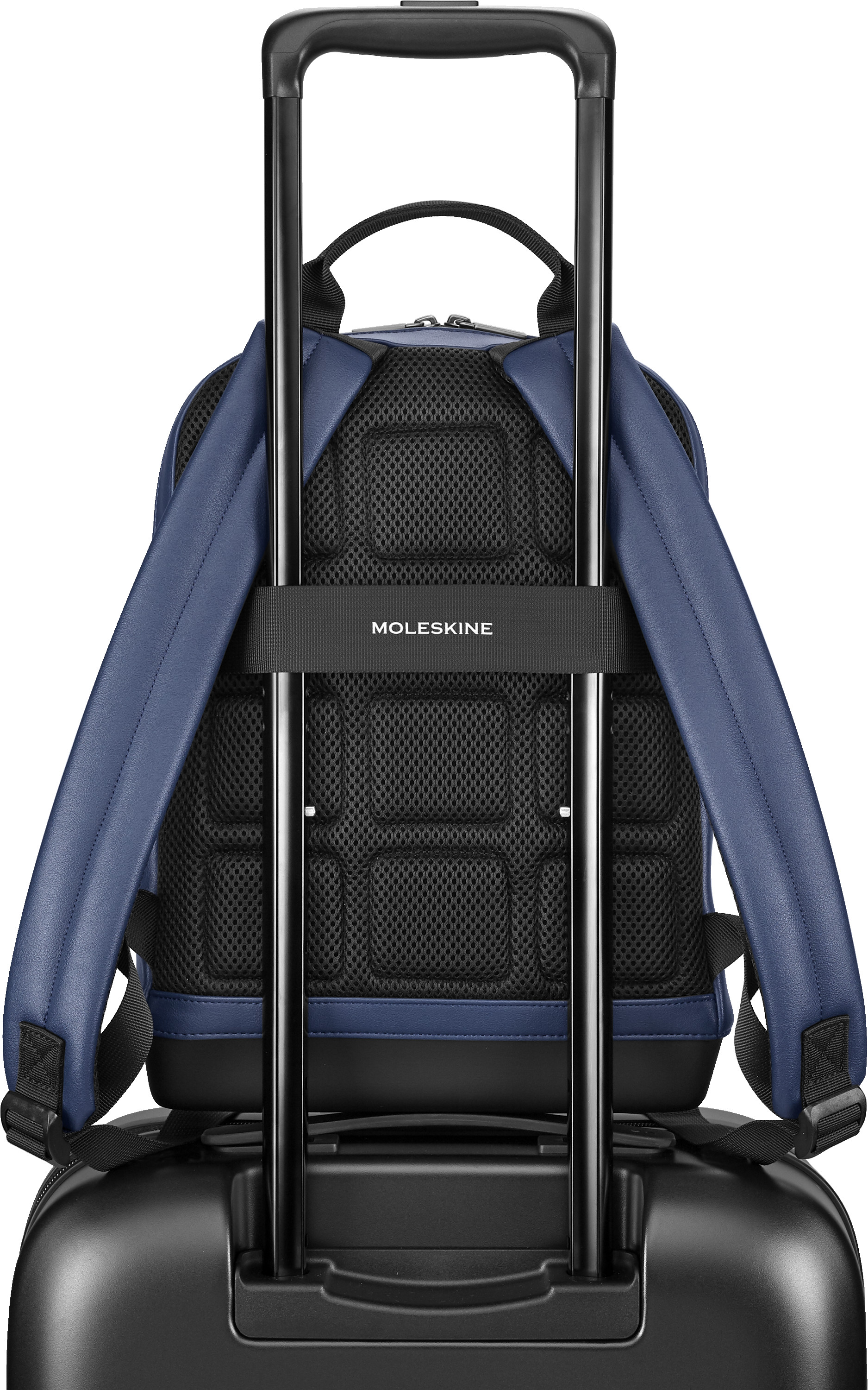 - neues Air-Mesh-Gewebe am Rücken mit quadratischen Nähten und Gepäckgurt mit Moleskine Logo