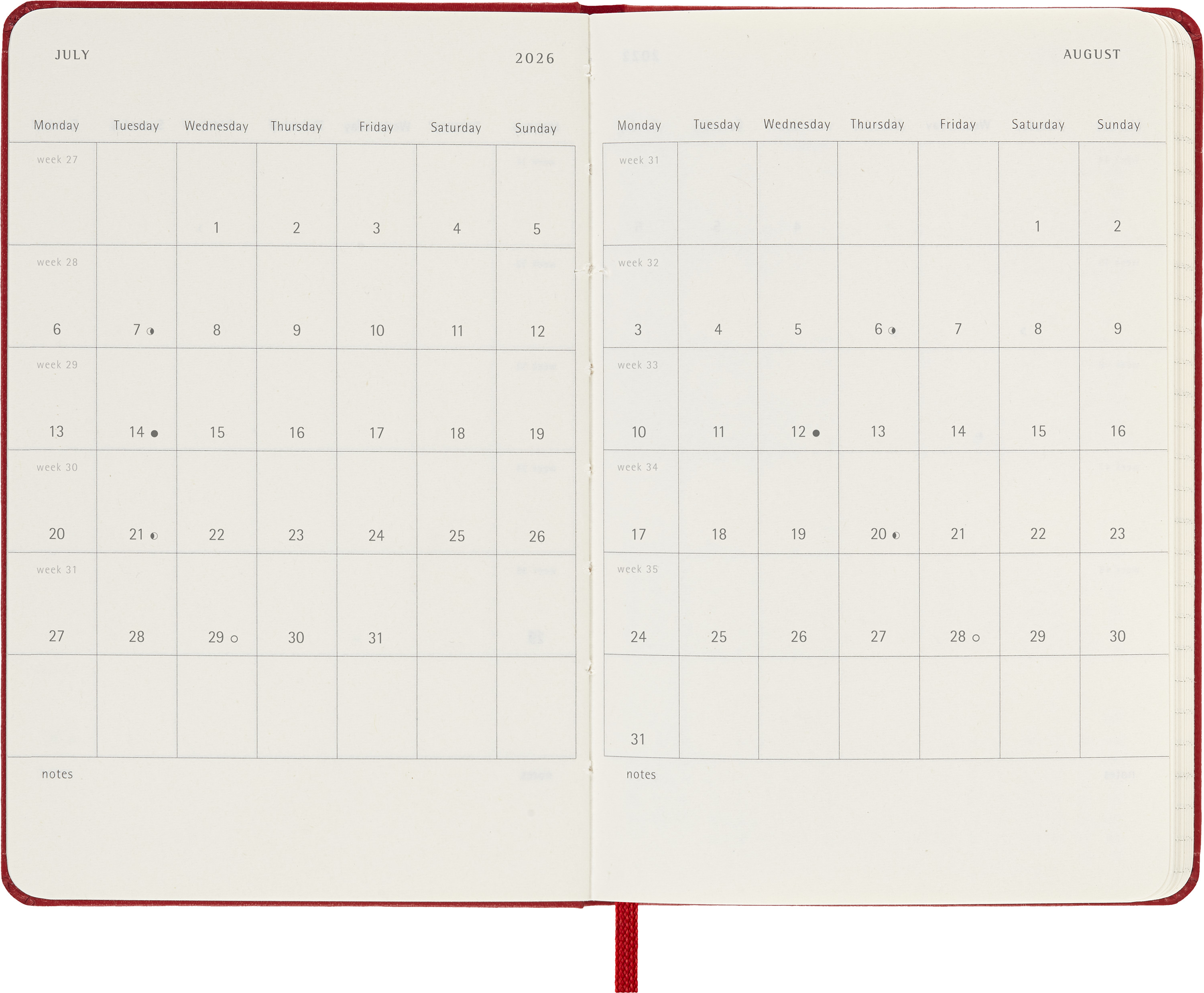 Journalier - chaque jour une nouvelle page, lignée pour les notes et les rendez-vous.