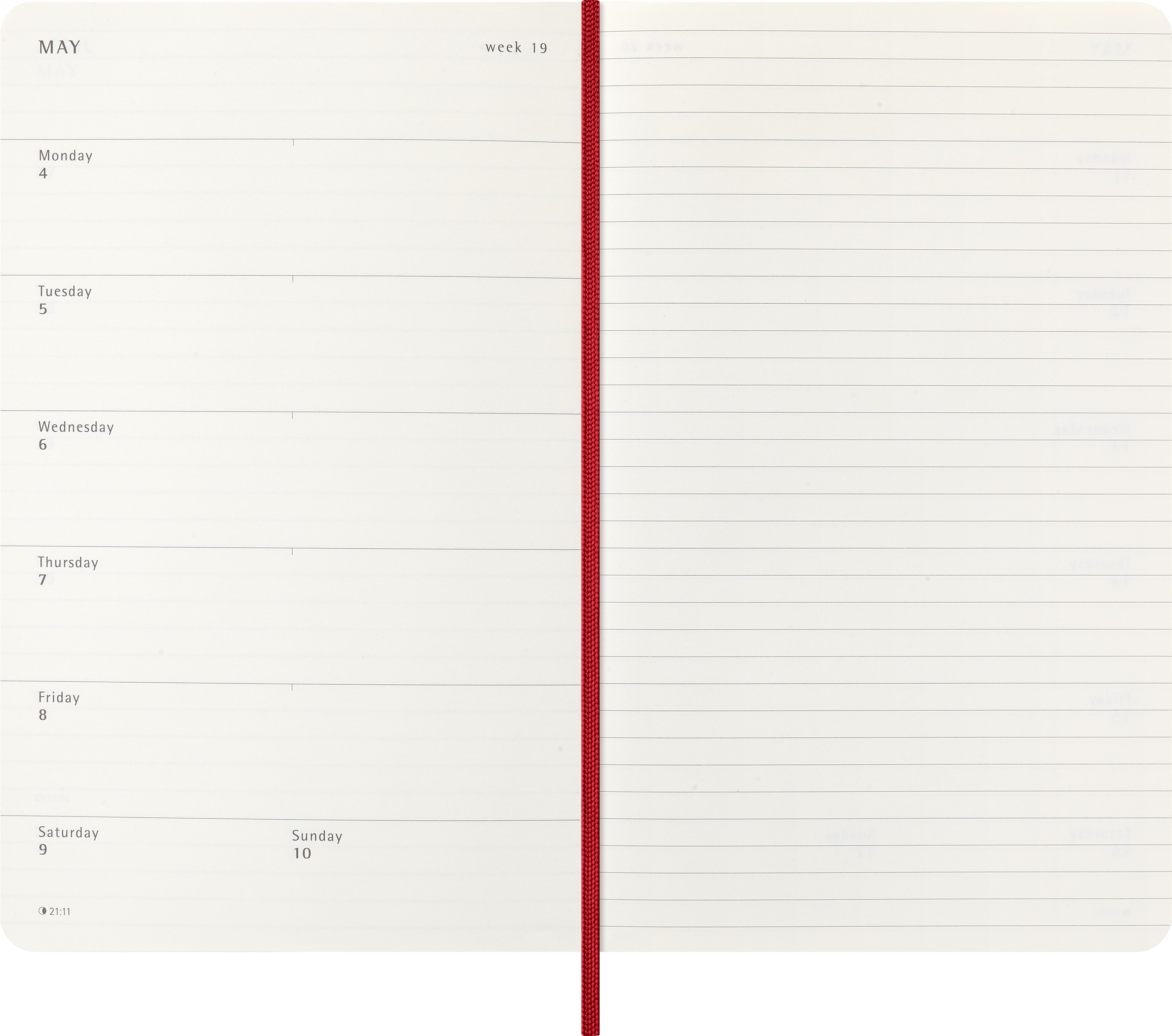 La semaine à gauche, une page lignée à droite.