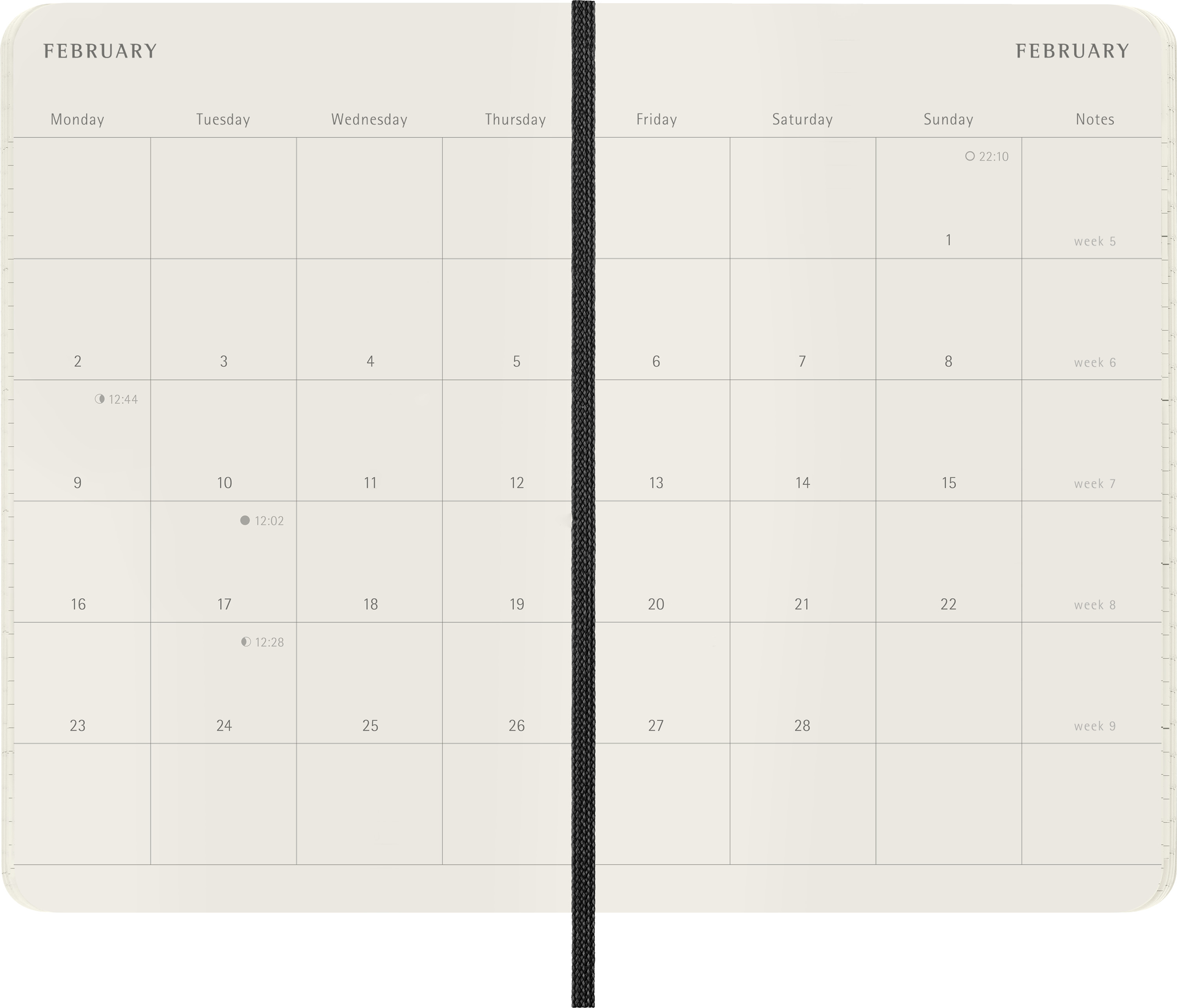 Monthly Notebook Large SC Black 2026 Softcover, 13 x 21 cm | 128 Seiten