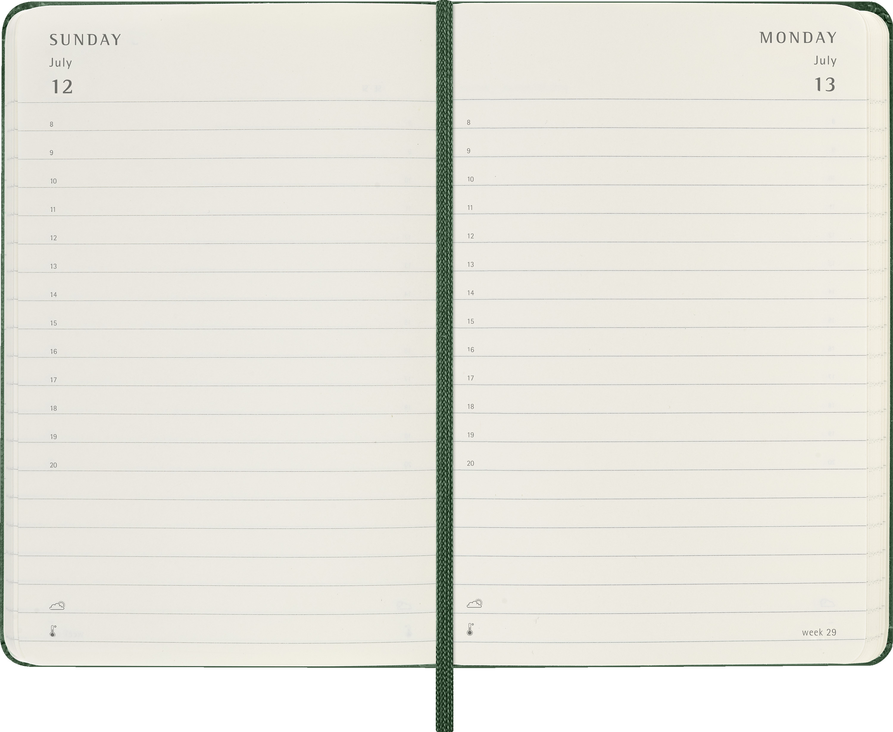 Journalier - chaque jour une nouvelle page, lignée pour les notes et les rendez-vous.