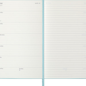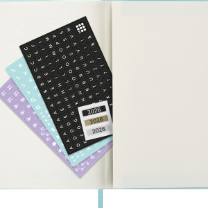 - nützliche Hilfsmittel wie Kalendarium, Reiseplanung, Ideen und Ziele, linierte Seiten für Notizen