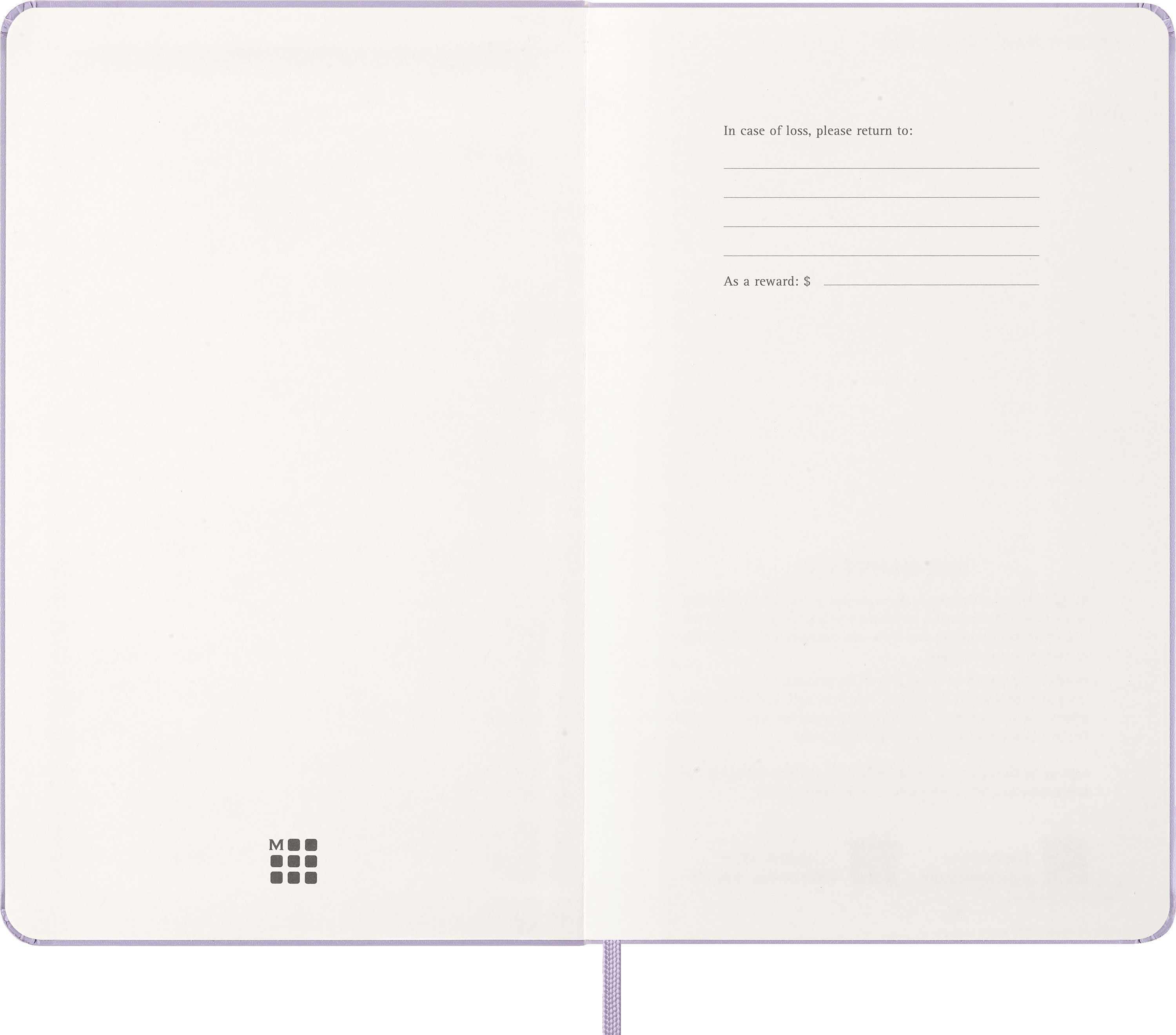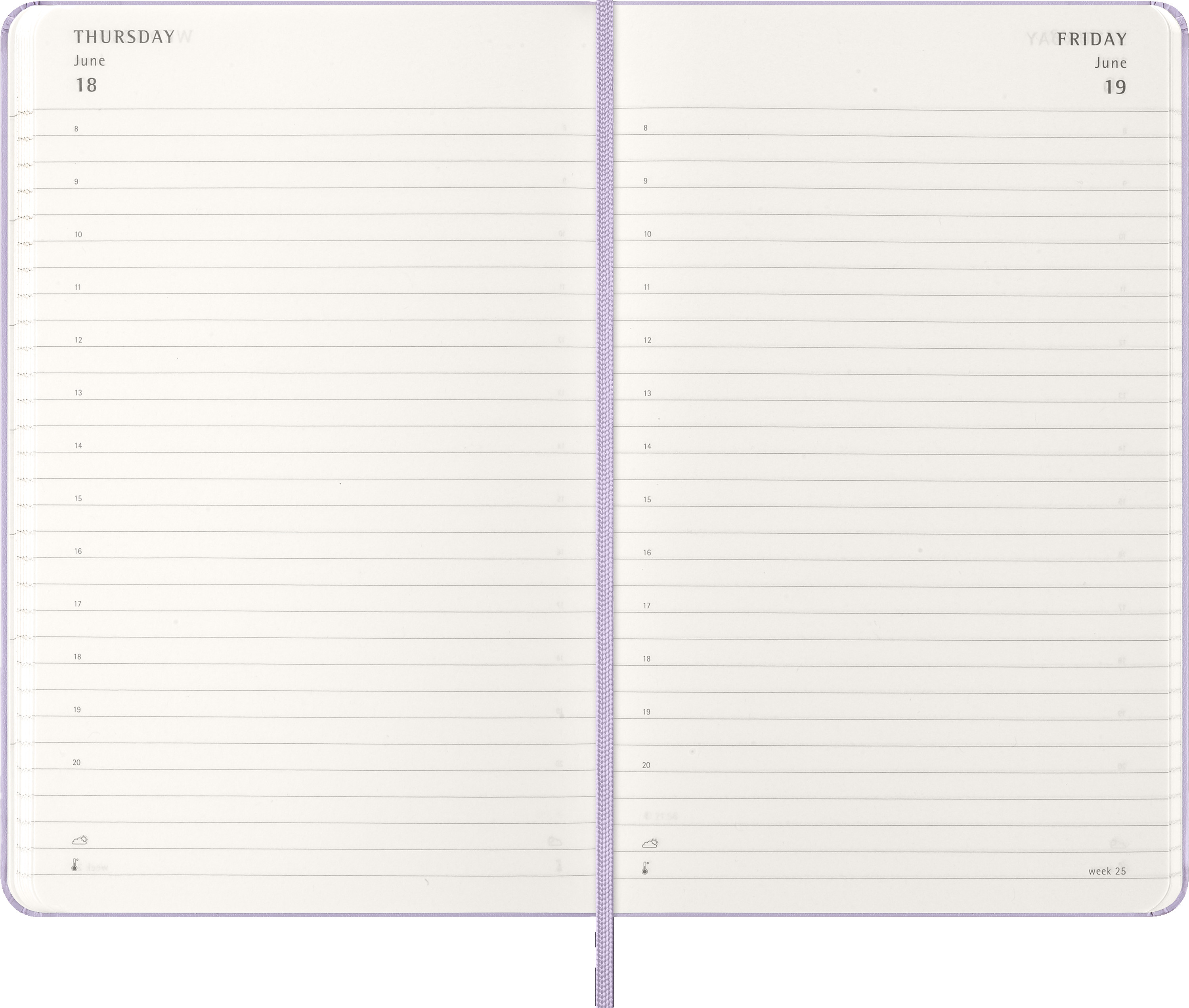 - fester Einband mit abgerundeten Ecken, Gummiband zum Verschliessen und Lesebändchen