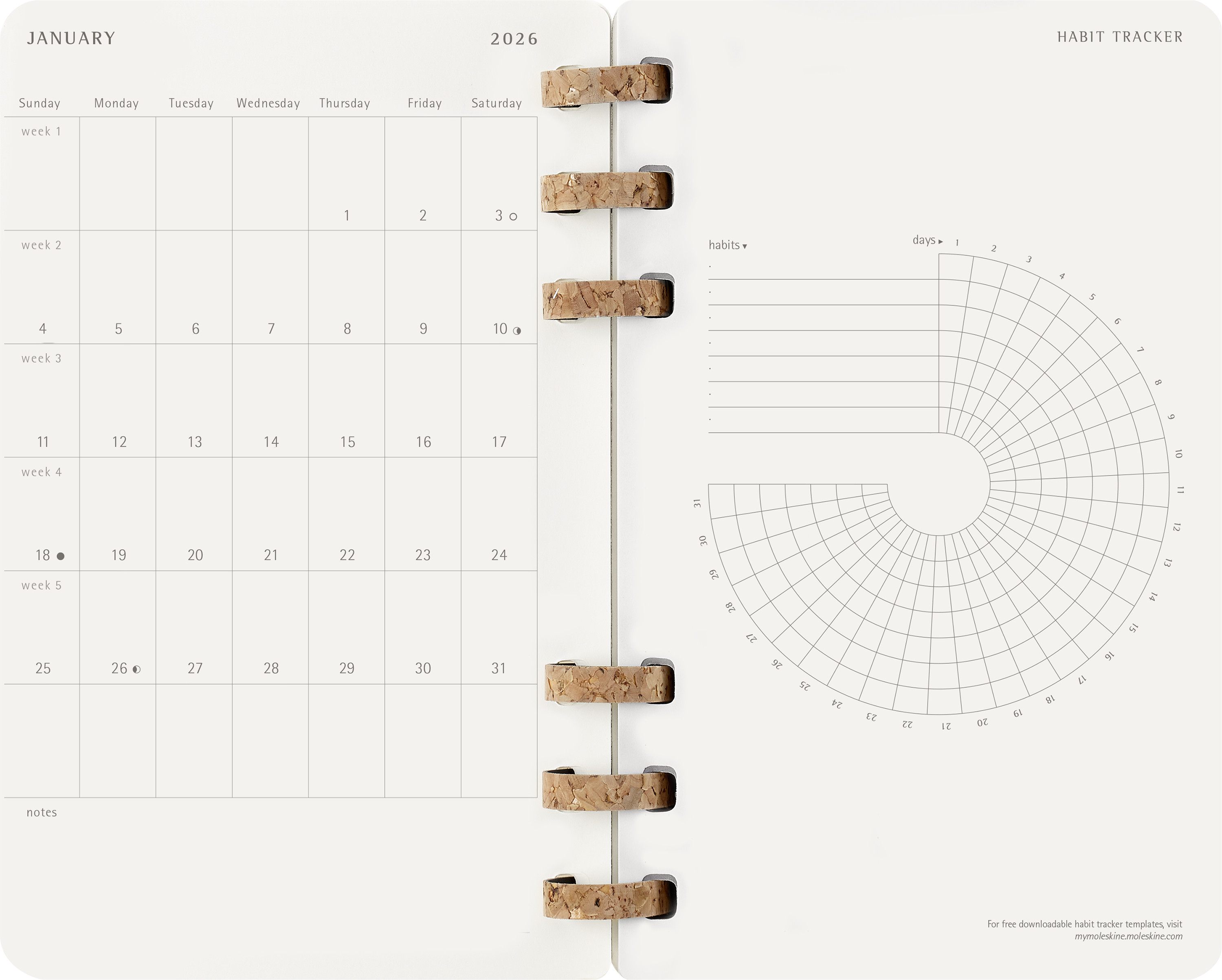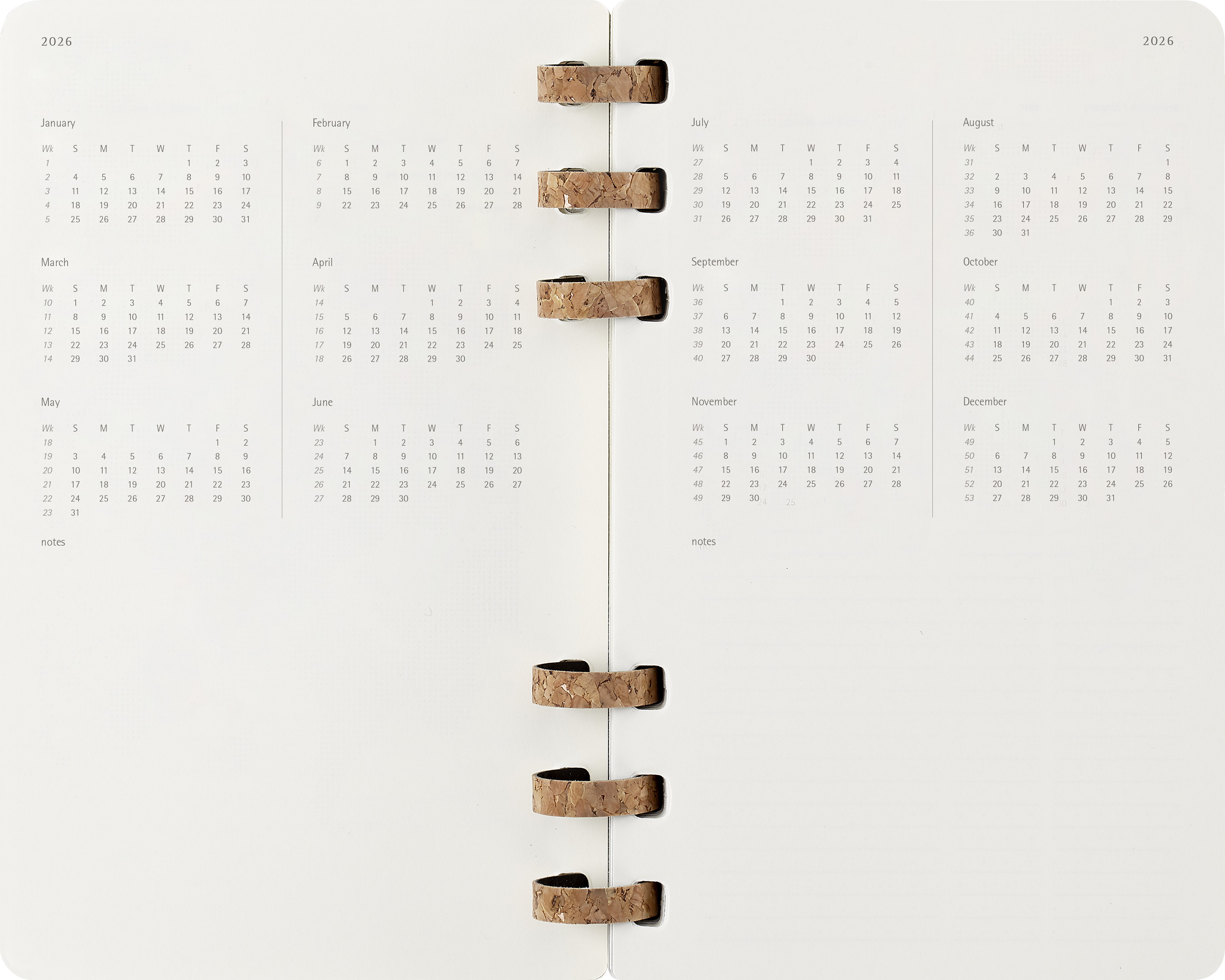 - robuste, aber flexible Spiralbindung aus Kork-Mix