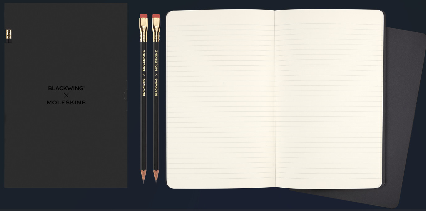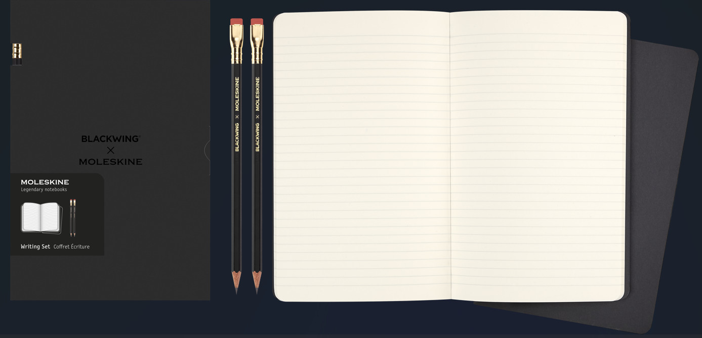 Die Blackwing Bookstore Collection zelebriert die zeitlose Verbindung zwischen Bleistift und Papier. Sorgfältig zusammengestellt für Leser, Schriftsteller und Träumer, kombiniert jedes Set die legendären Blackwing-Bleistifte mit klassischen Moleskine Cahier-Notizbüchern. Ob zum Festhalten von Worten oder zum Entwerfen von Skizzen – diese Kollektion verwandelt alltägliche Momente des Schreibens und Zeichnens in bleibende Ausdrucksformen der Kreativität.