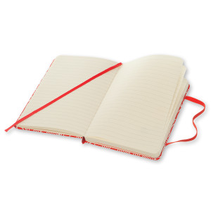 - Fester Einband mit thematisch abgestimmten Grafikelementen und Details, abgerundeten Ecken und Gummiband zum Verschliessen