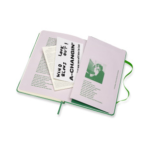 Moleskine feiert dieses Musikgenie auf Einband und Vorsatzblättern, die den Text des 1965er Hits „Subterranean Homesick Blues“ tragen. Das Notizbuch enthält Themensticker, die von dem bahnbrechenden Video für den Song inspiriert sind; die Banderolenrückseite wiederum ist dem Klassiker „The Times They Are A-Changin’“ gewidmet.