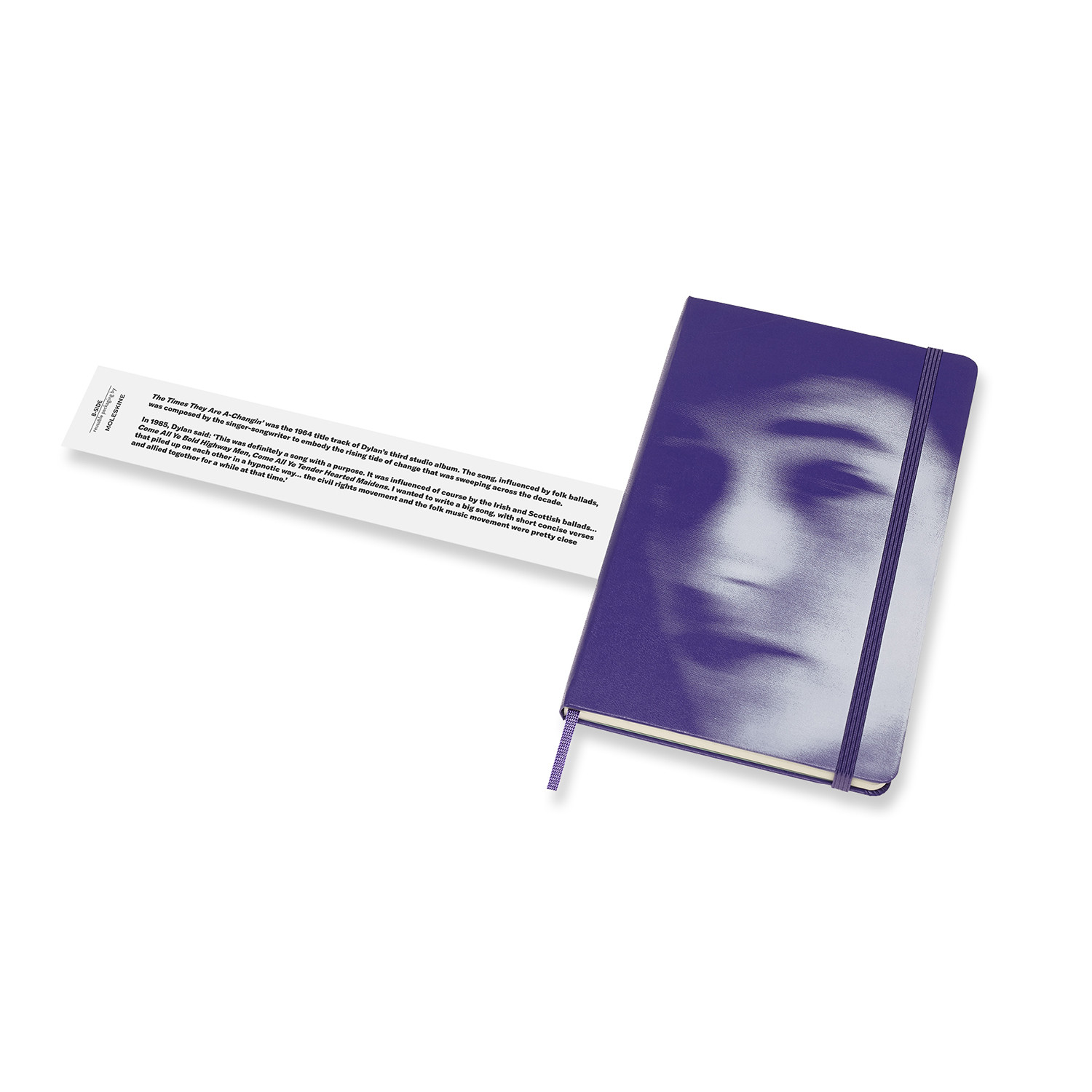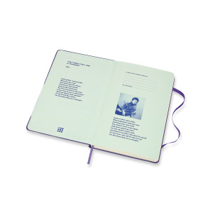 Moleskine feiert dieses Musikgenie auf Einband und Vorsatzblättern, die den Text des Titelsongs seines Albums „The Times They Are A-Changin’“ von 1965 tragen. Diese Hymne hat auch die Rückseite der Banderole inspiriert. Die erweiterbare Tasche auf der Rückseite enthält Themensticker, die ihre Inspiration aus dem bahnbrechenden Video Dylans zu seinem 1965er Hit „Subterranean Homesick Blues“ beziehen.
