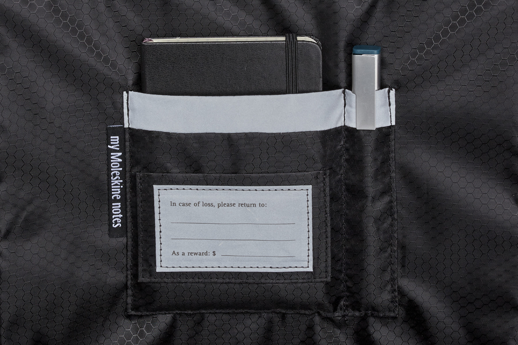 Neben einem geschützten Gerätefach bietet diese wasserdichte Gerätetasche auch eine Tasche „My Moleskine Notes“ und einen Stifthalter, um Ideen unterwegs auf Papier festzuhalten. Alle übrigen Gegenstände finden im Hauptfach Platz – Berichte, Ordner oder was immer Sie brauchen, um den ganzen Tag über mobil und in Verbindung zu bleiben. Mit frischen Linien, Wendereissverschlüssen mit glatter Oberfläche und feinen reflektierenden Details innen und außen bewahrt diese moderne Gerätetasche Ihre Wertsachen sicher auf, während Sie beschäftigt sind.
