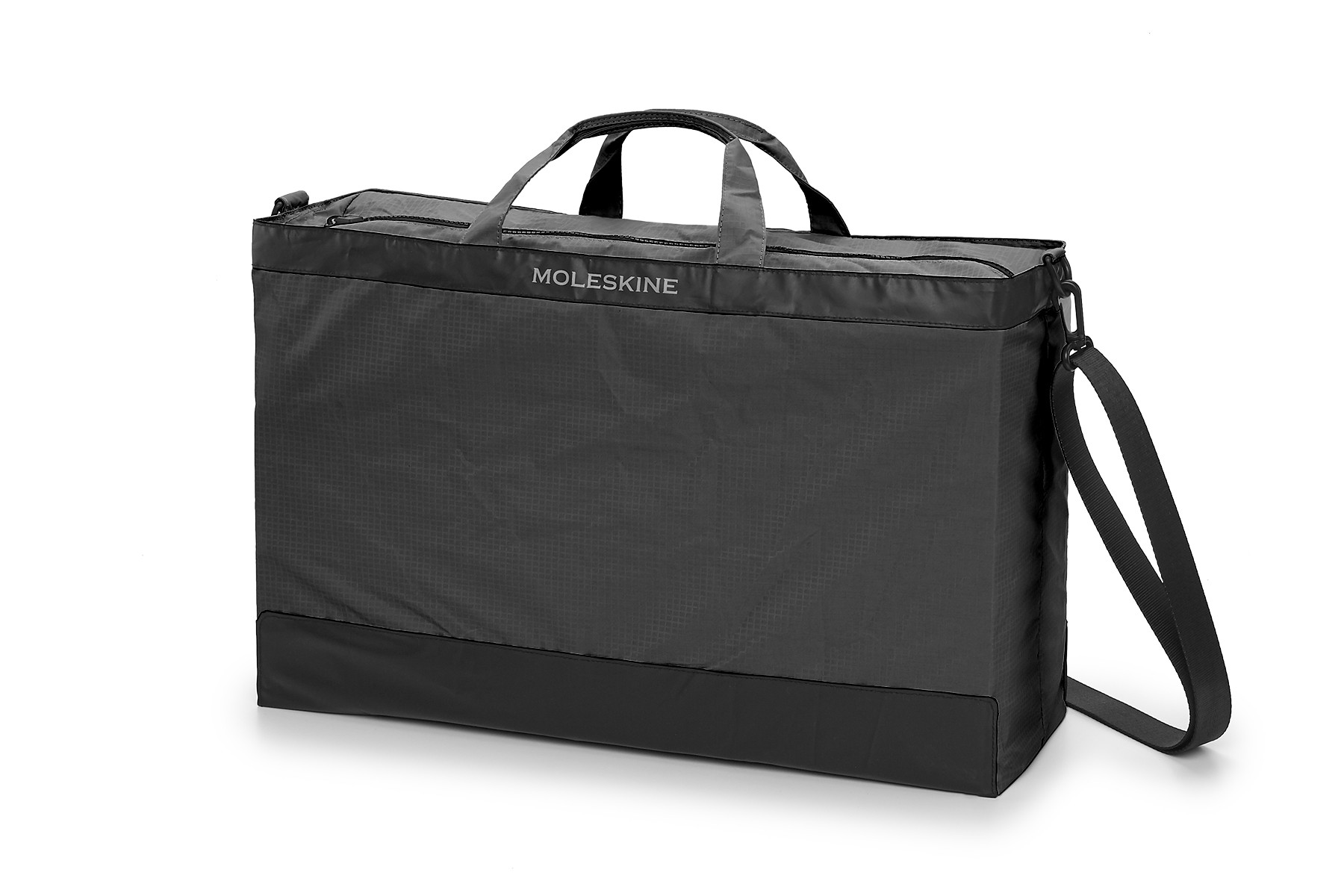 Polyvalent, lavable et avec une taille généreuse, le sac de voyage pliable se plie en un joli pochon quand vous ne l'utilisez pas. Il a de courtes poignées de couleur assortie et une bandoulière noire détachable pour les longs voyages. Le logo Moleskine est imprimé discrètement sur le dessus.
