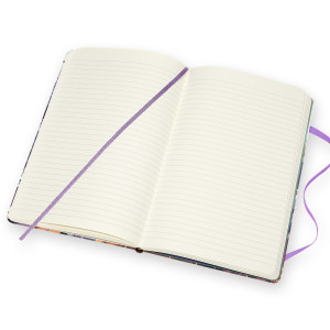 - abgerundete Ecken, Gummiband zum Verschliessen und passendes Lesezeichenbändchen