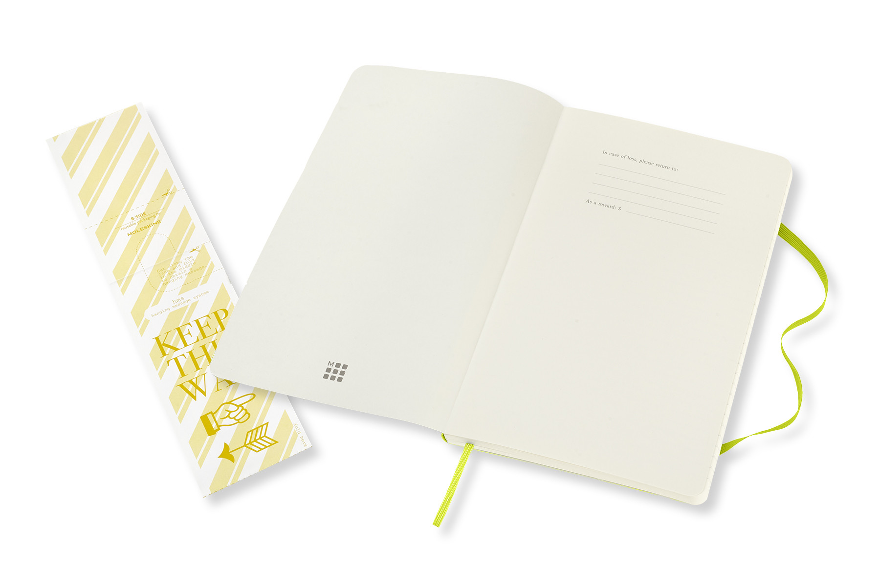 Wie alle Classic Notizbücher verfügt diese hellgrüne Ausführung über einen farblich passenden Gummibandverschluss und abgerundete Ecken, die die Seiten und alles andere in seinem Inneren schützen, sowie ein zugehöriges Lesezeichenband, das Sie stets wieder zur richtigen Stelle führt. Eine erweiterbare Tasche hinten bietet Platz für lose Notizen und Ideen, die Sie unterwegs sammeln. Auf dem unverkennbaren „In case of loss“-Hinweis vorne können Sie Ihren Namen und eine Belohnung für den ehrlichen Finder festhalten – der erste Schritt, um sich dieses Notizbuch zu eigen zu machen.