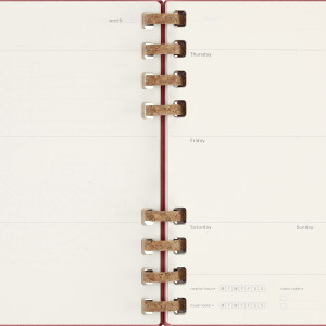 - fünf Wochen pro Monat (jede undatierte Woche wird auf einer Doppelseite dargestellt)