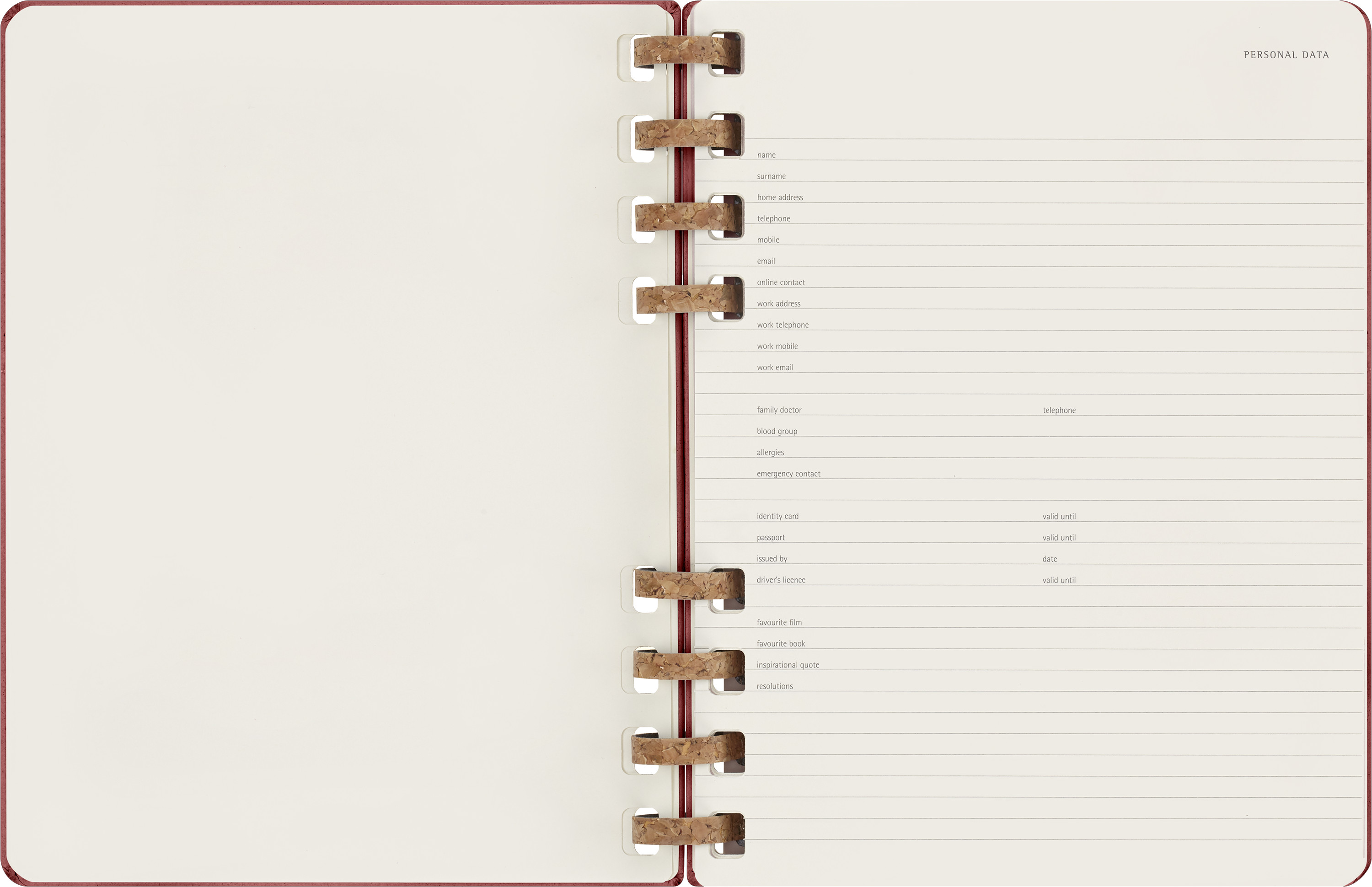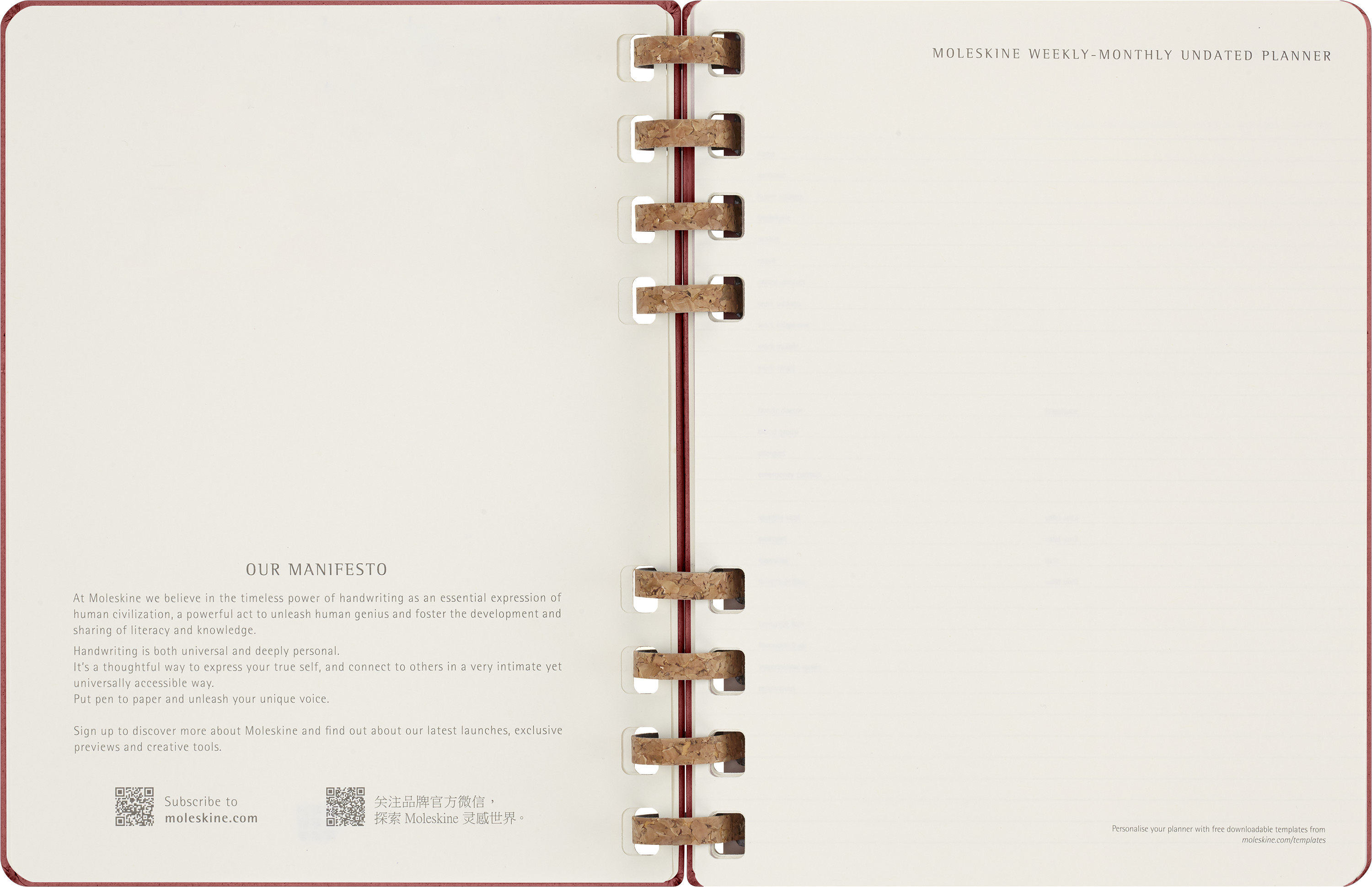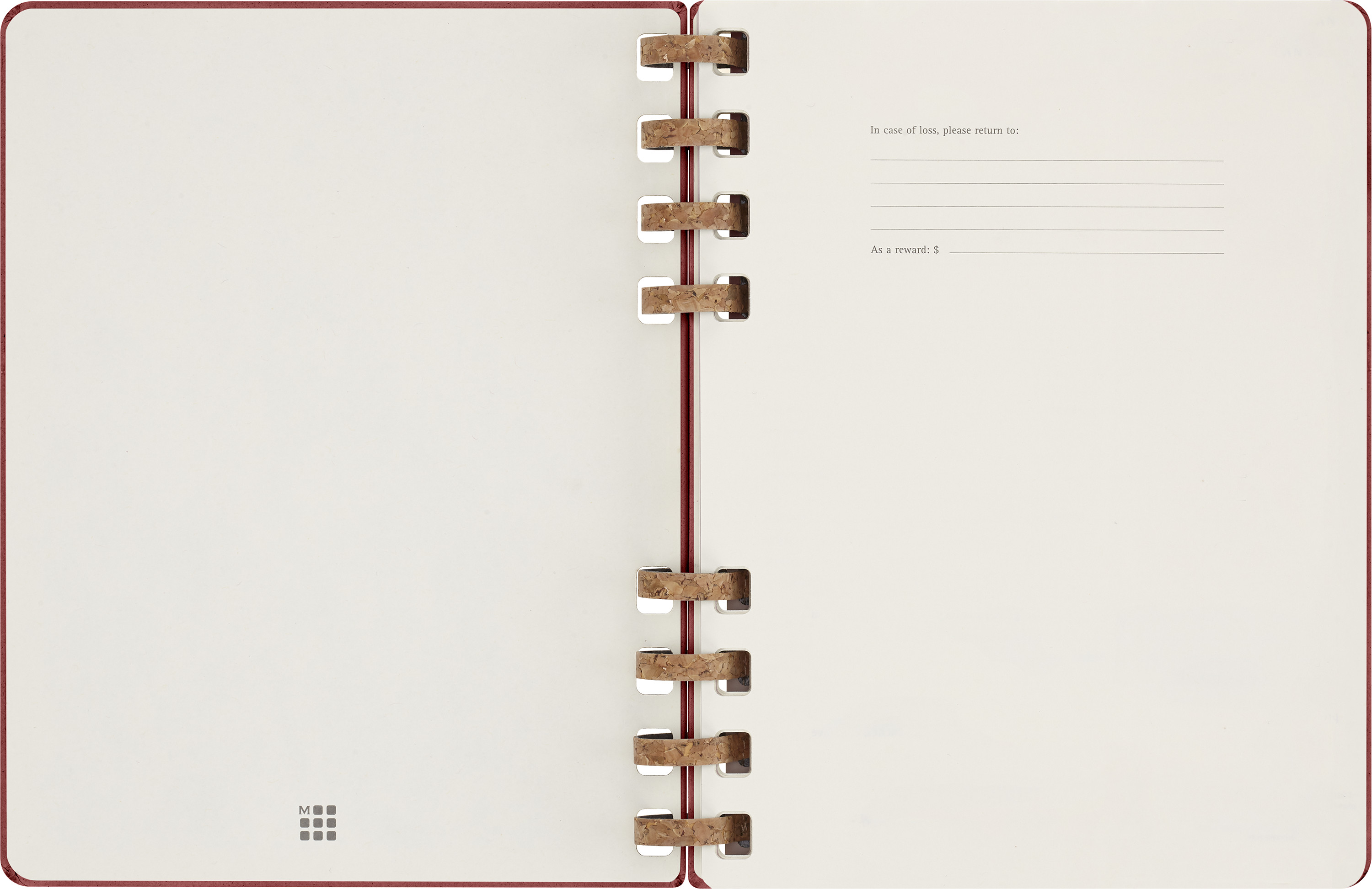 - robuste, aber flexible Spiralbindung aus Kork-Mix