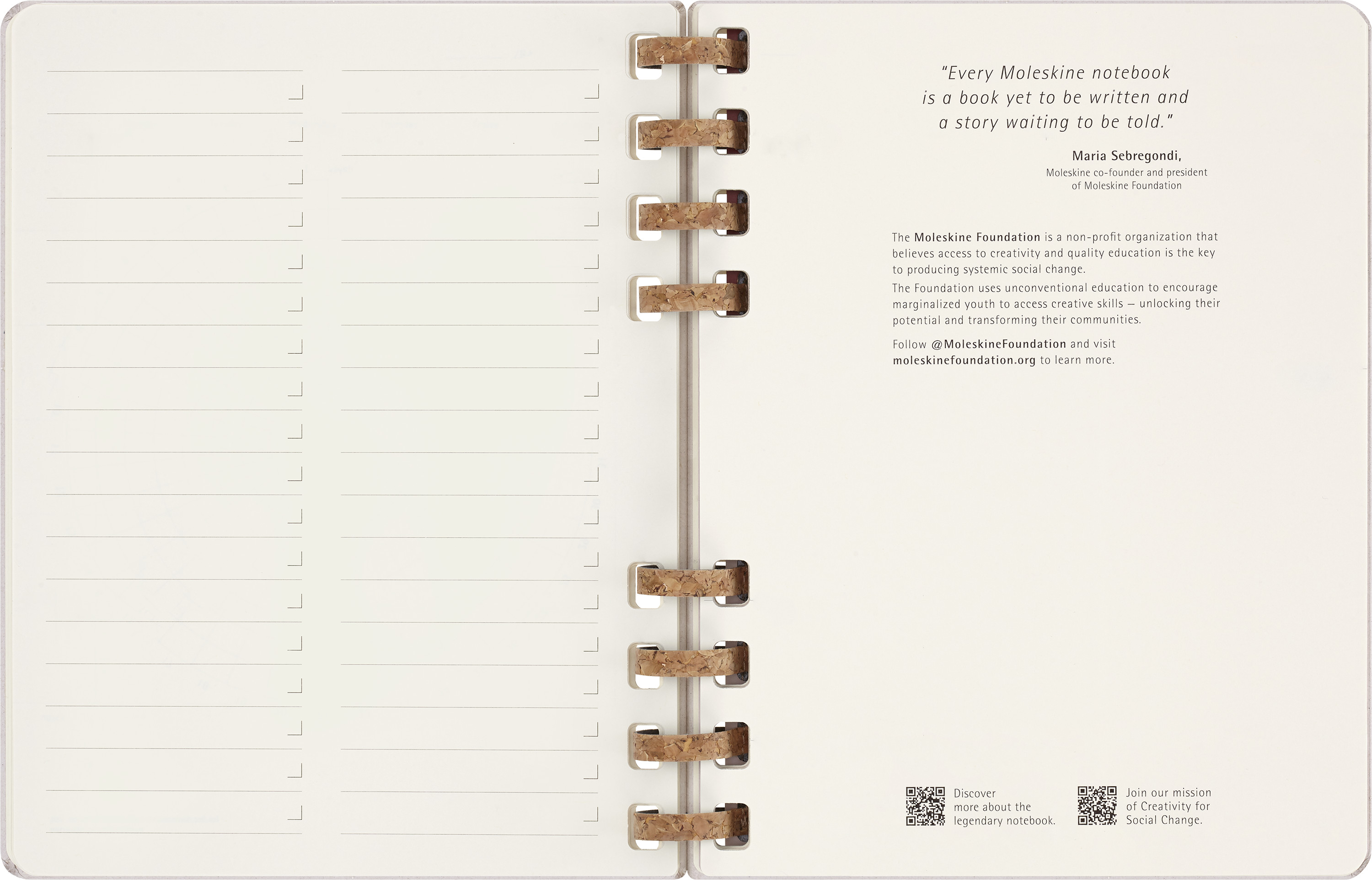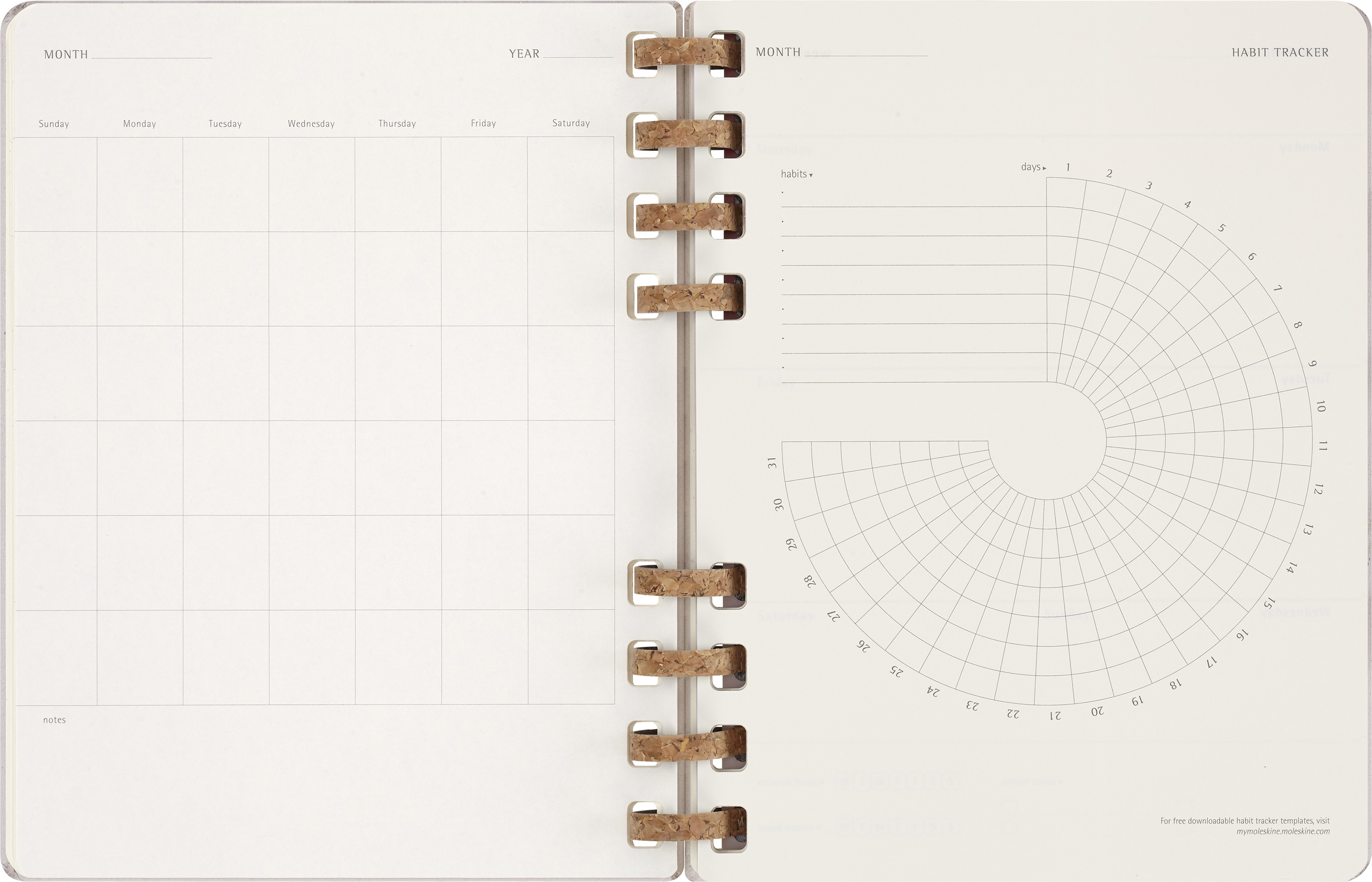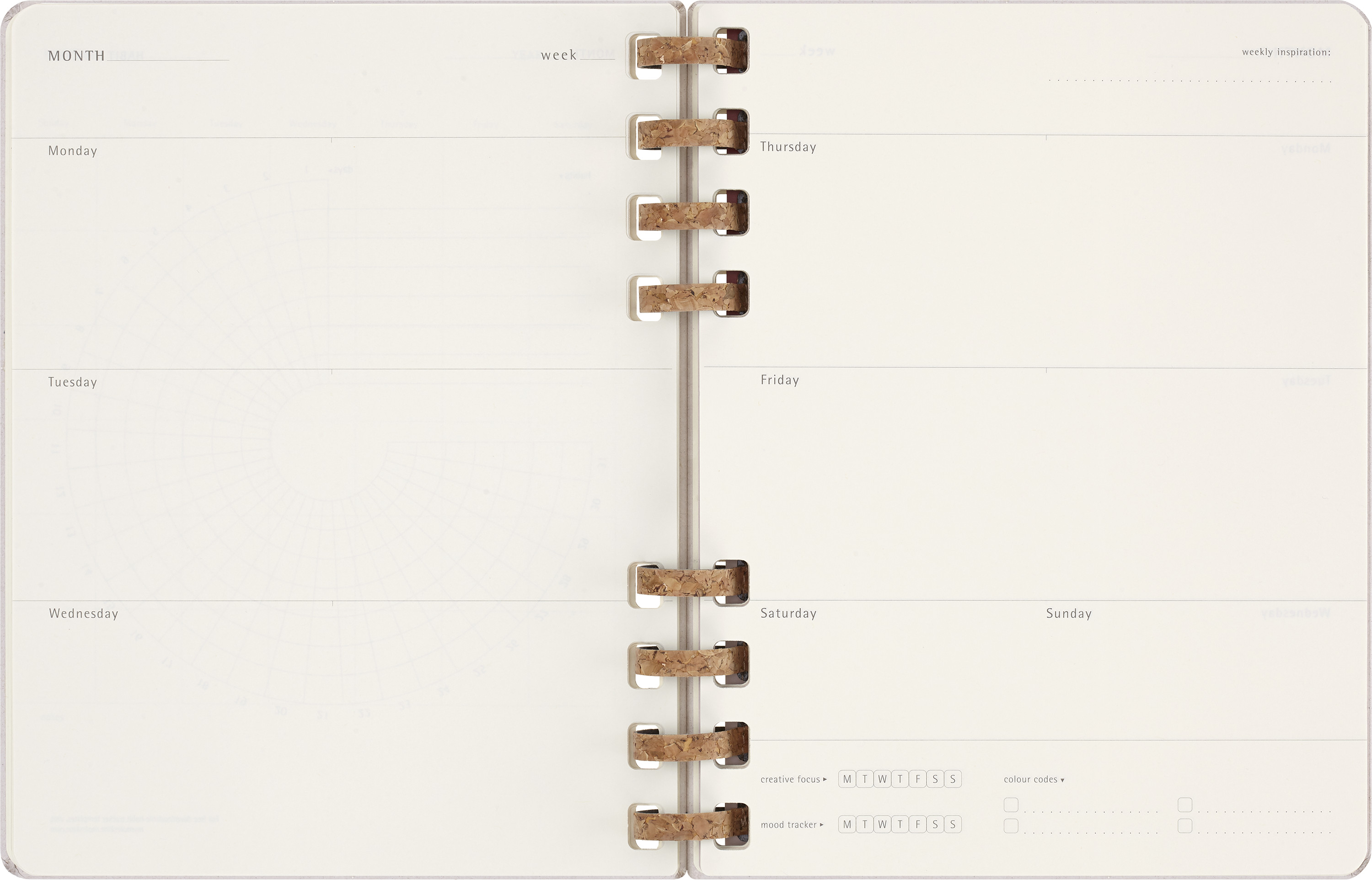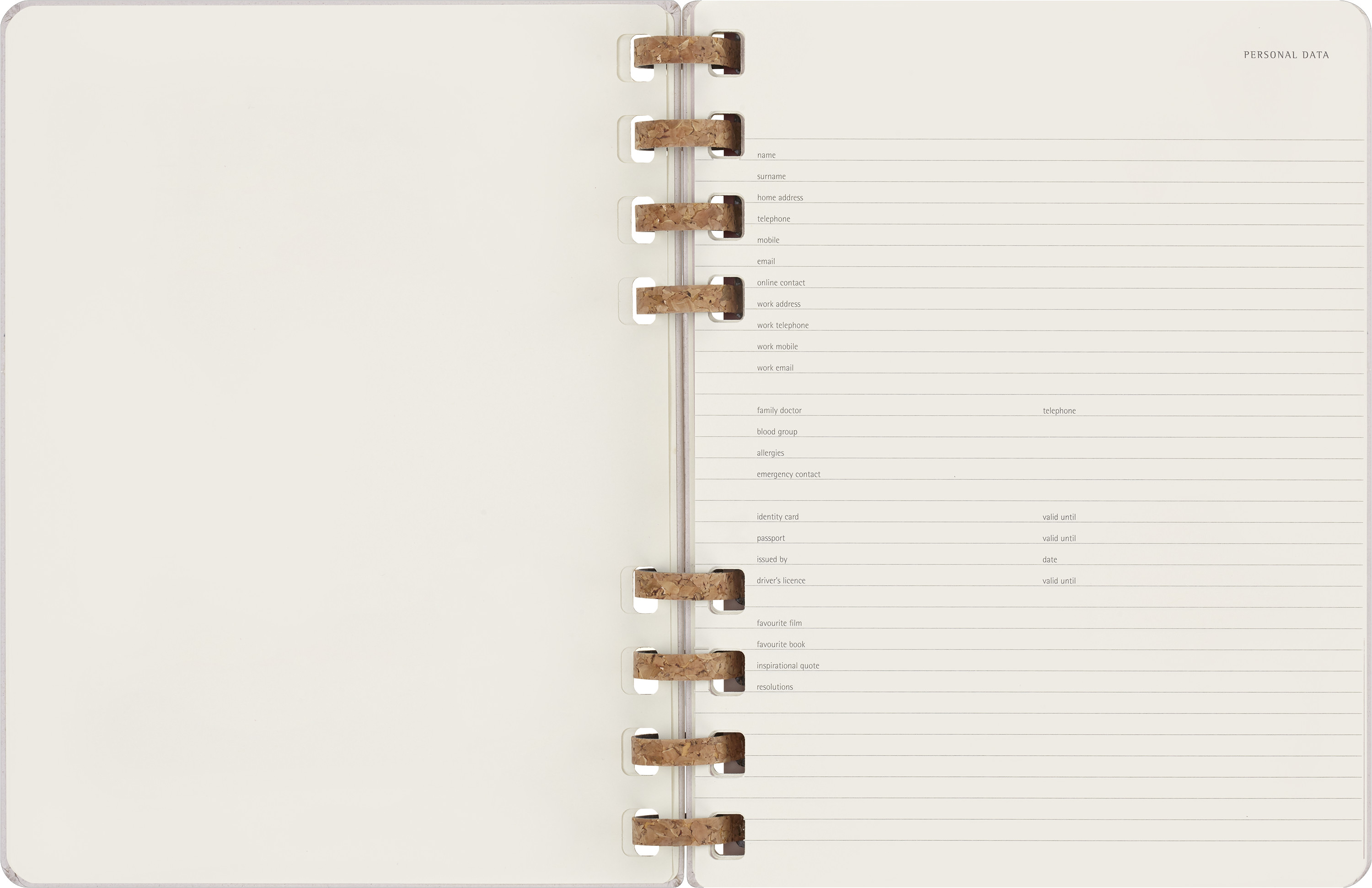 - robuste, aber flexible Spiralbindung aus Kork-Mix