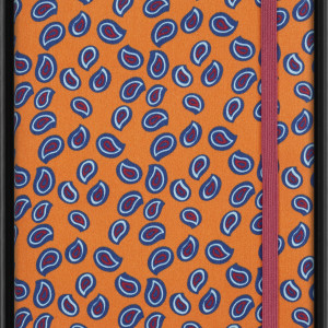 - oranger Einband mit Paisleymuster