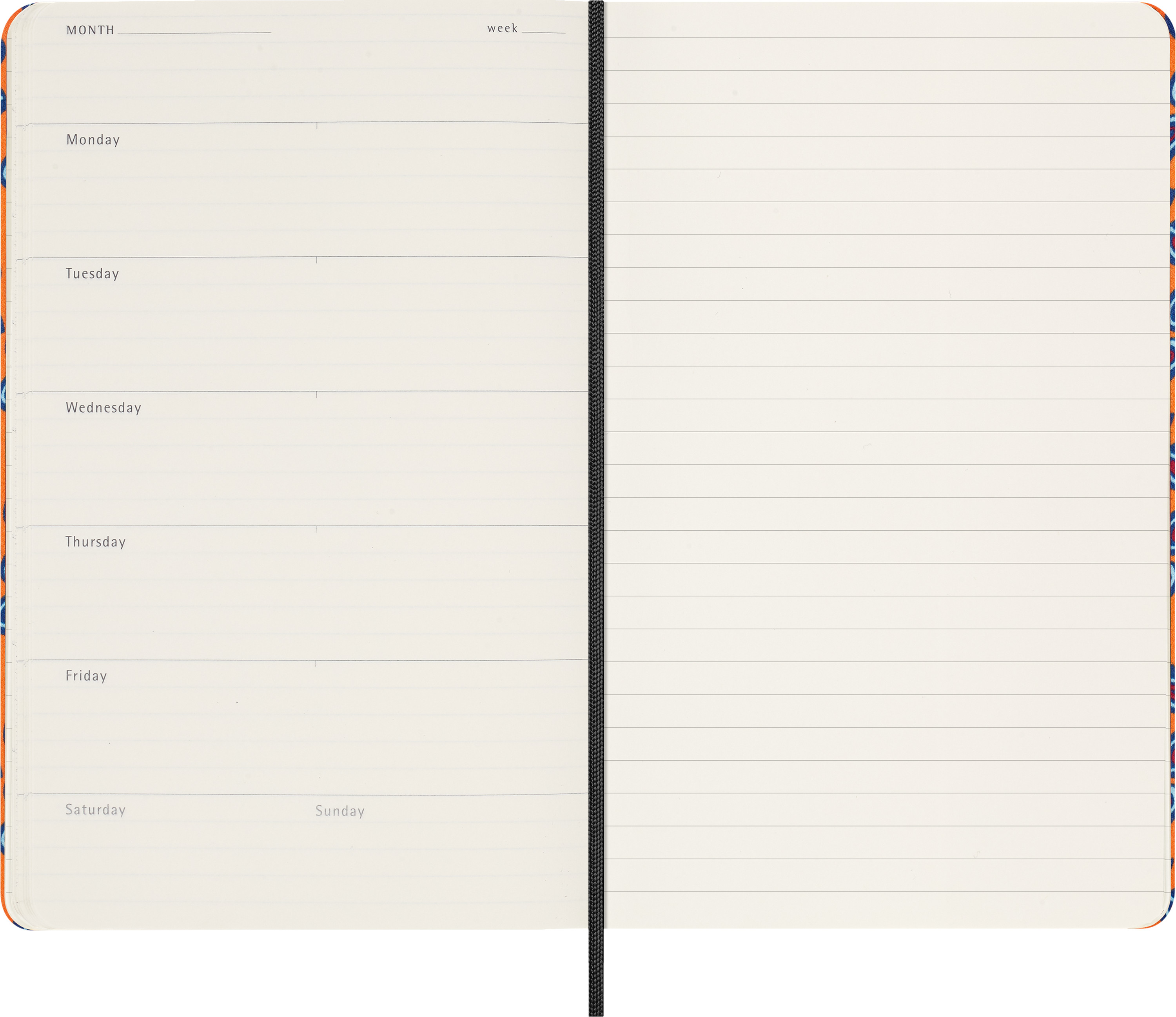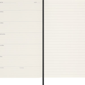 - Links Wochenagenda, rechts linierte Notizseite