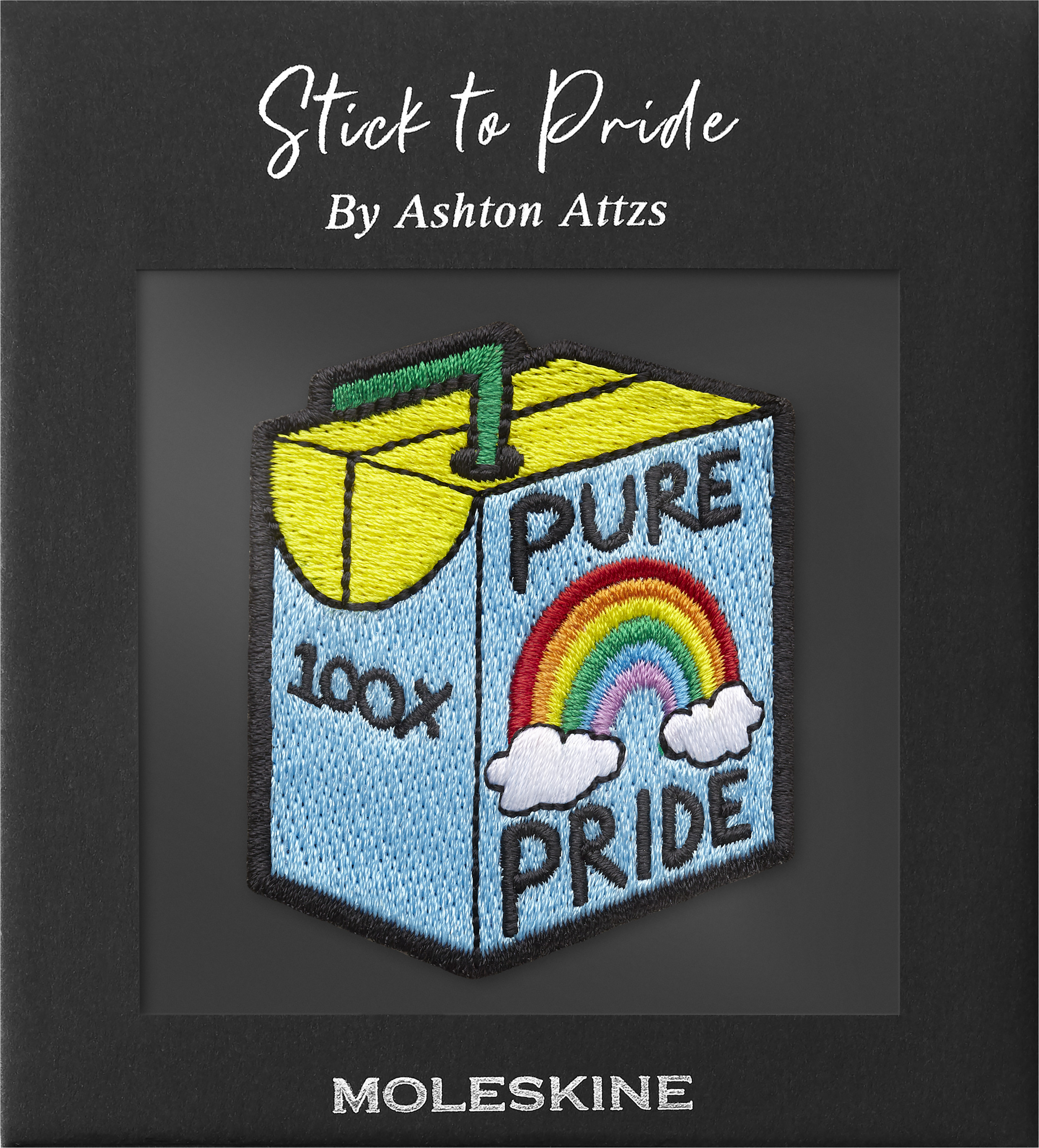 Farbenfroher gestickter Aufkleber, entworfen von Ashton Attzs dessen unverwechselbaren Gemälde und Illustrationen eine Reihe von Themen wie LGBTQ+ Interessenvertretung, Einheit, Positivität, Musik und psychische Gesundheit zelebrieren.