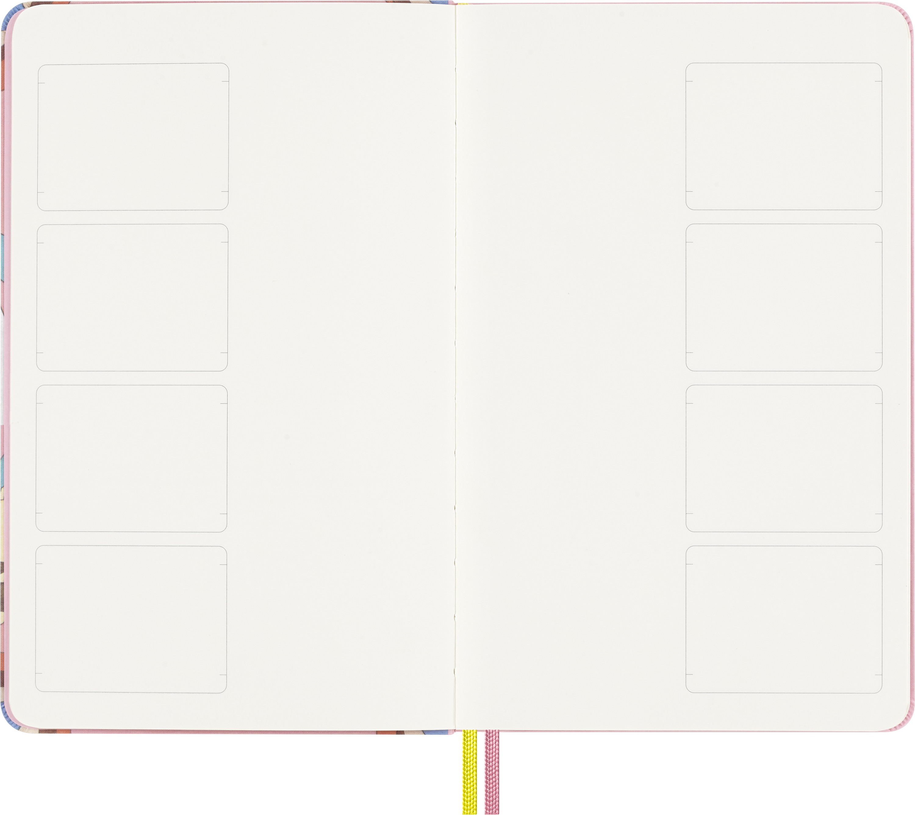 - Abgerundete Ecken, Gummiband zum Verschliessen und 2 Lesezeichenbänder