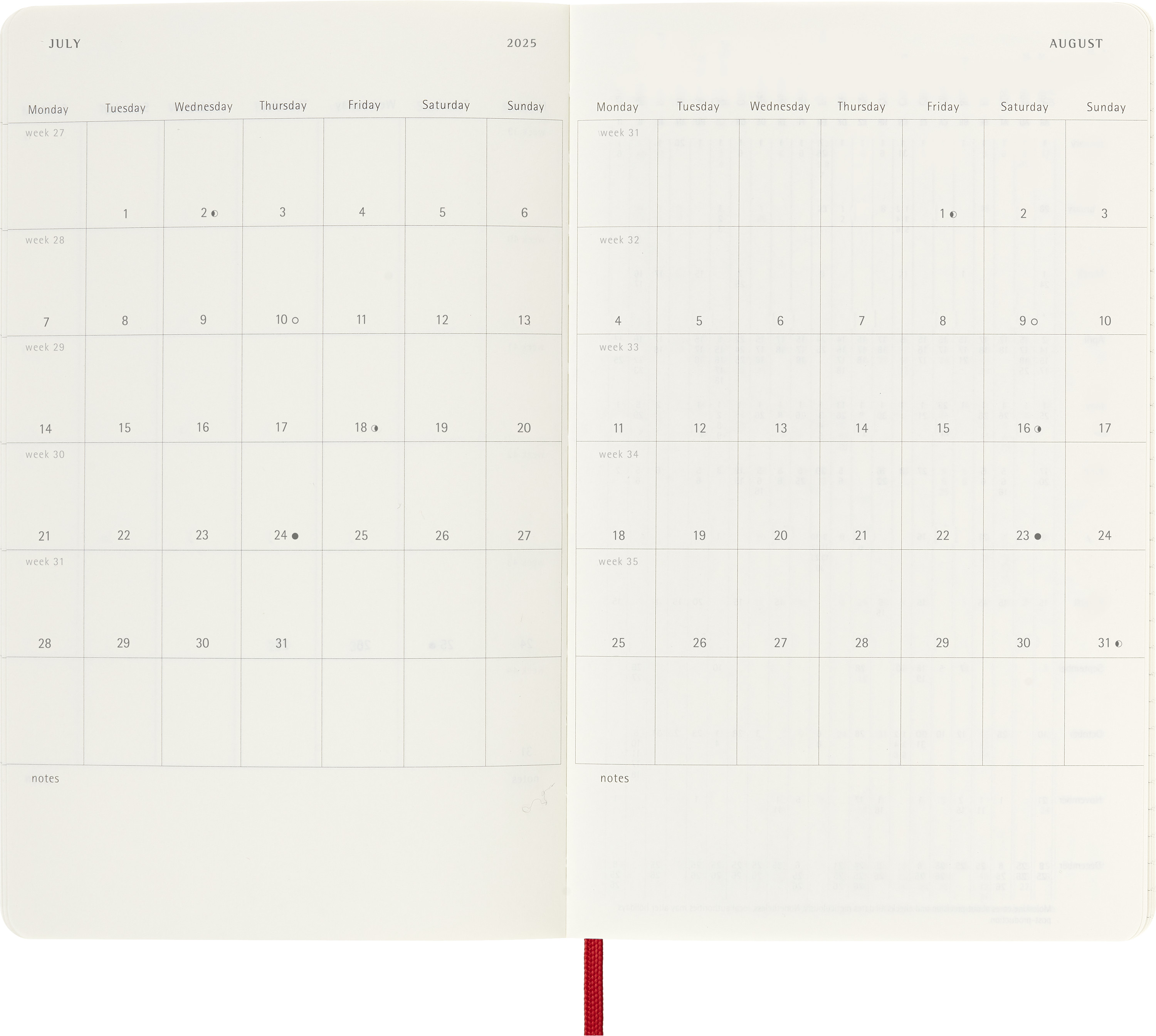 Links Wochenagenda, rechts linierte Notizseite