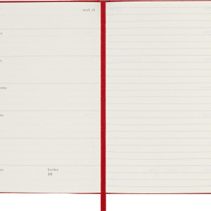 - fester Einband mit abgerundeten Ecken, Gummiband zum Verschliessen und Lesebändchen