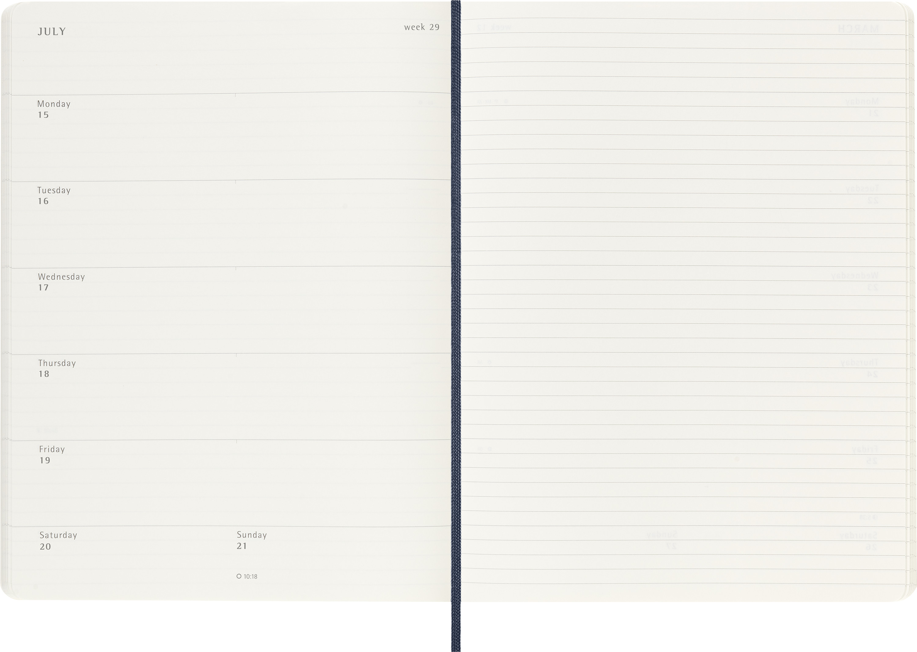 Links Wochenagenda, rechts linierte Notizseite