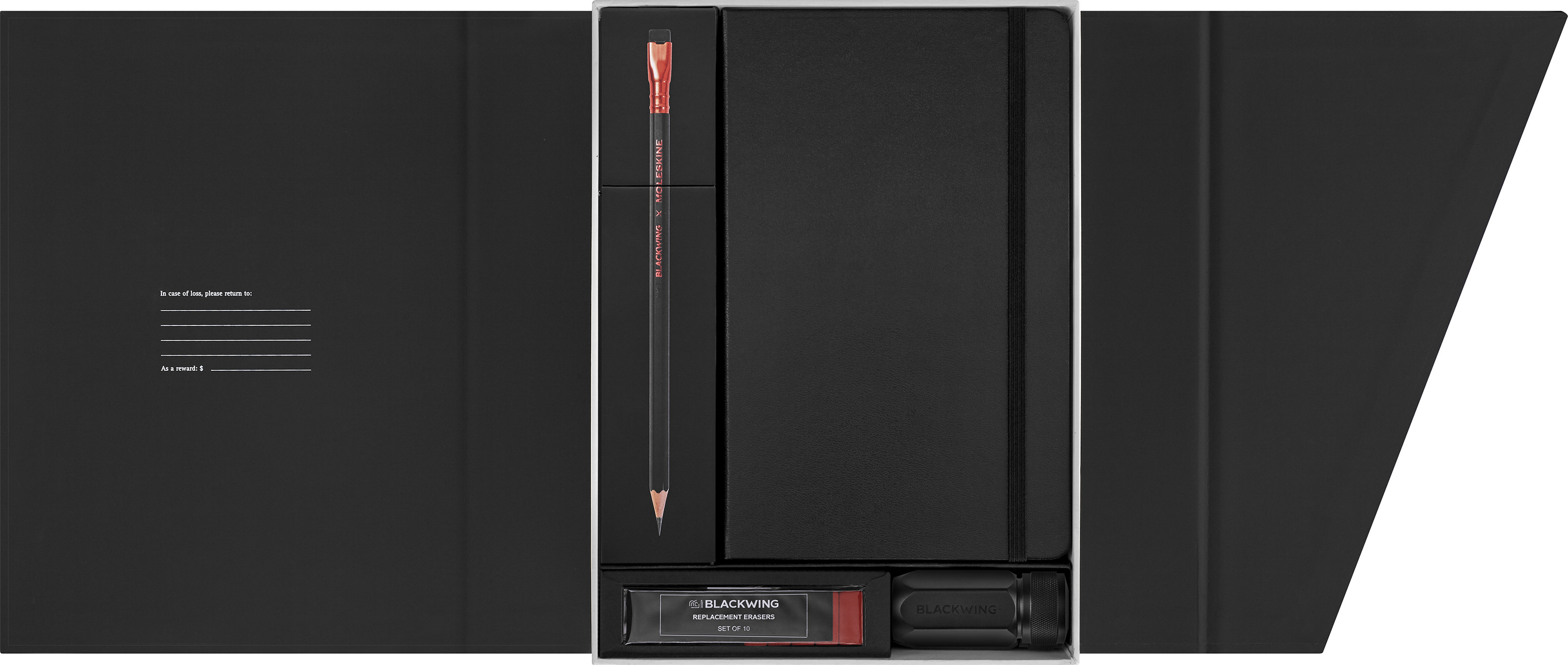 Das Kreativ-Set vereint zwei legendäre Marken in einem wunderschön gestalteten Geschenkset. In der Box finden Sie einen Jahresvorrat von 12 weichen Blackwing Bleistiften für Graphitzeichnungen und ein grosses Moleskine Skizzenbuch sowie eine Packung mit 10 Ersatzradiergummis und einen One-Step Long Point Anspitzer. Dieses Kreativset enthält alles, was Sie brauchen, um Ihre Fantasie auf dem Papier auszuleben.