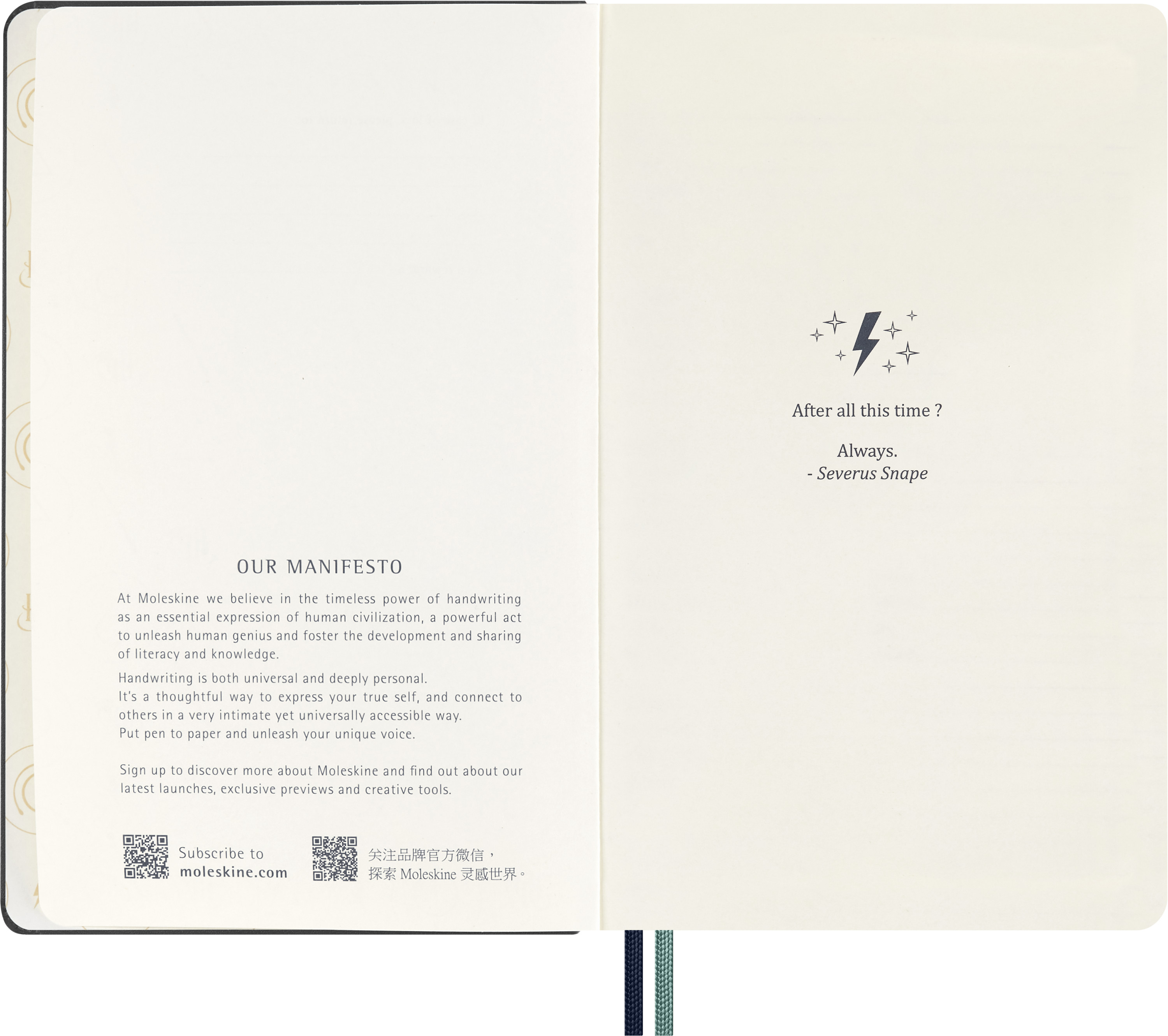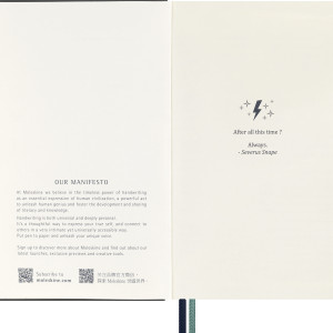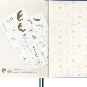 Chaque carnet et agenda de la collection met en avant un sort emblématique de la série, comme la formule Wingardium Leviosa ou l’incantation du Protego Maxima. Dans le monde des sorciers, le sort est une forme d'expression qui libère la magie, mais pour les fans de Harry Potter, chacun de ces sorts faciles à mémoriser fait jaillir des souvenirs, suscite des émotions et apporte de l'inspiration.