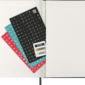 - nützliche Hilfsmittel wie Kalendarium, Reiseplanung, Ideen und Ziele, linierte + blanko Seiten für Notizen