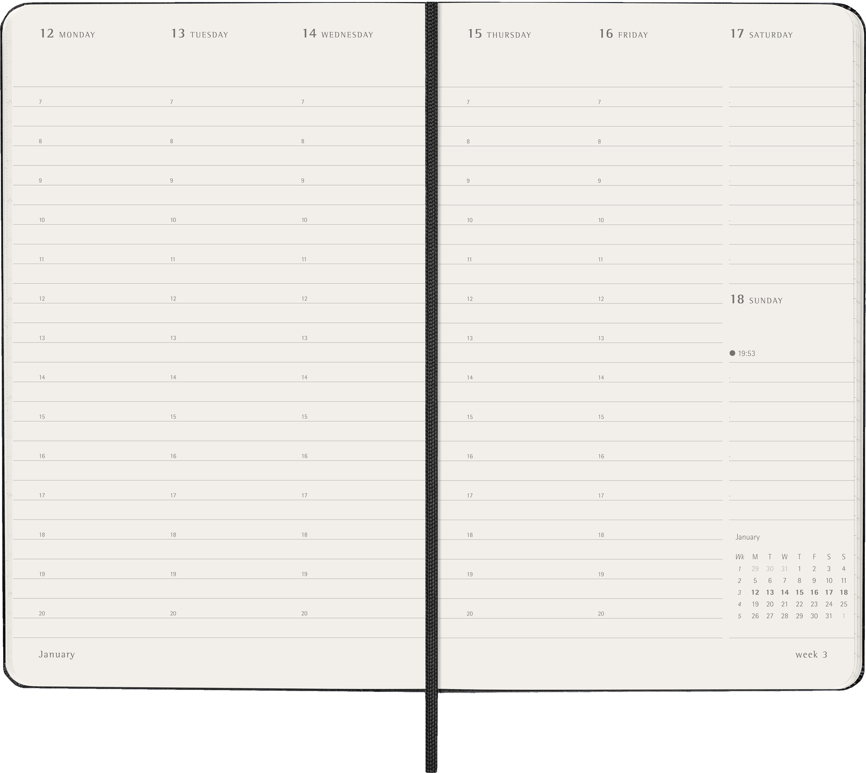 Eine Woche auf zwei Seiten in vertikalem Layout