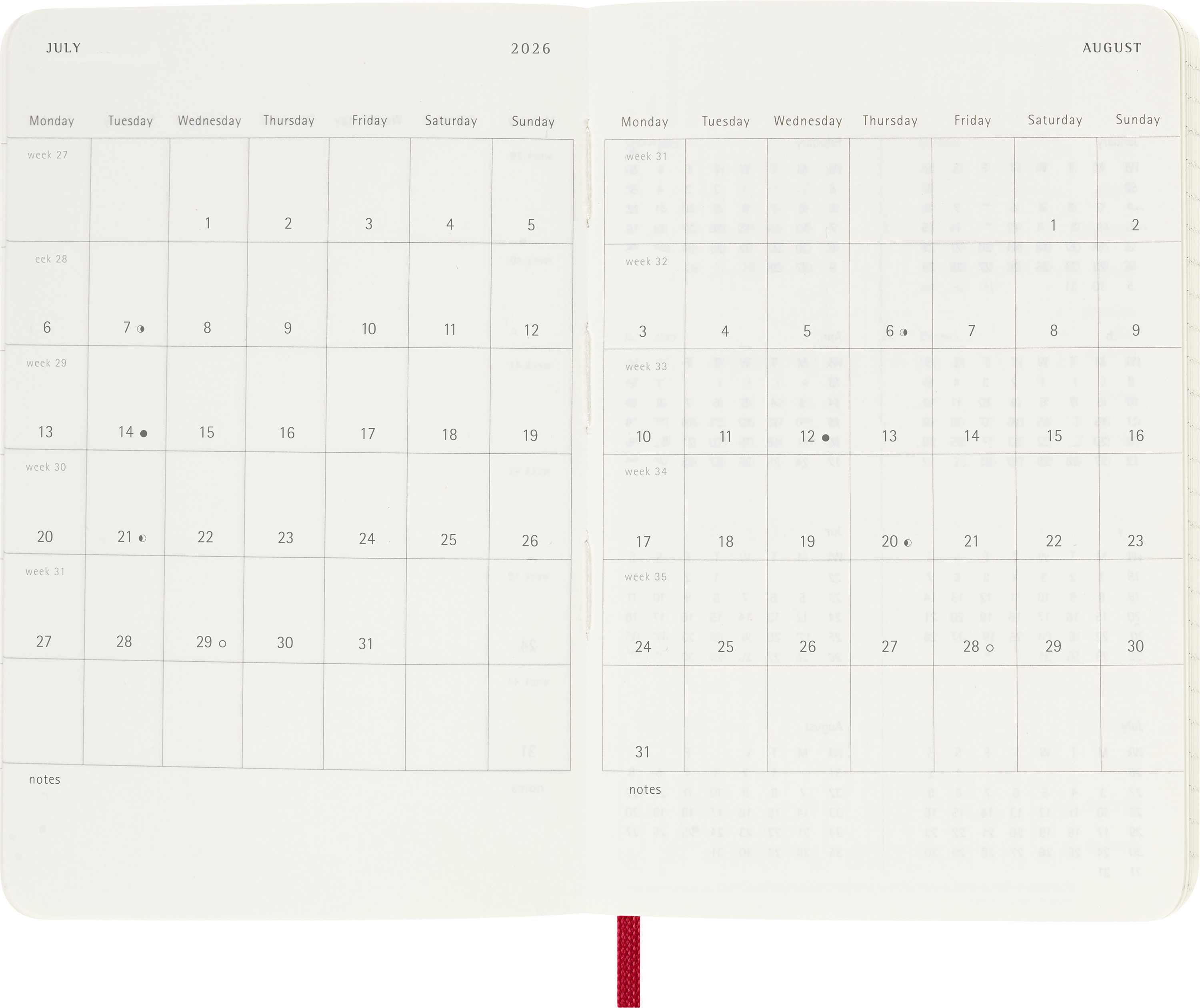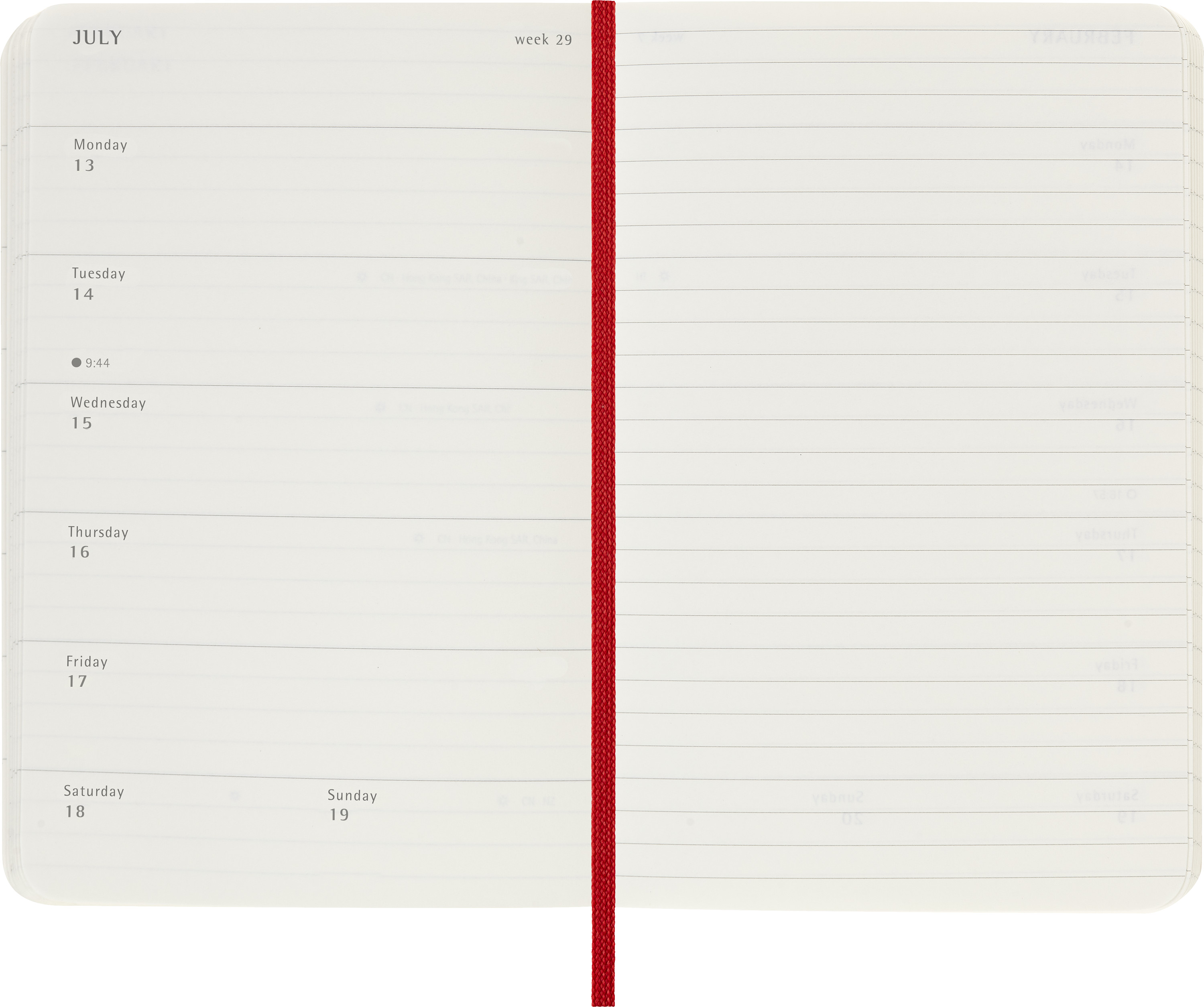Links Wochenagenda, rechts linierte Notizseite