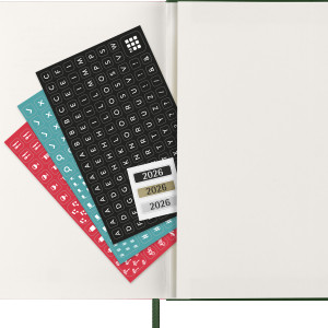 - nützliche Hilfsmittel wie Kalendarium, Reiseplanung, Ideen und Ziele, linierte Seiten für Notizen