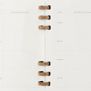 - robuste, aber flexible Spiralbindung aus Kork-Mix