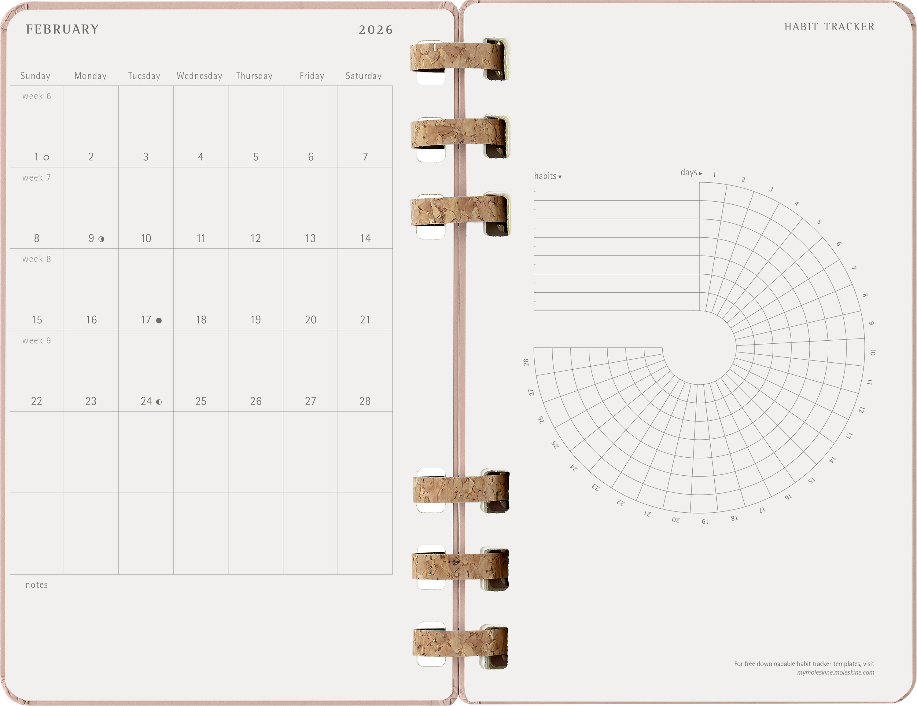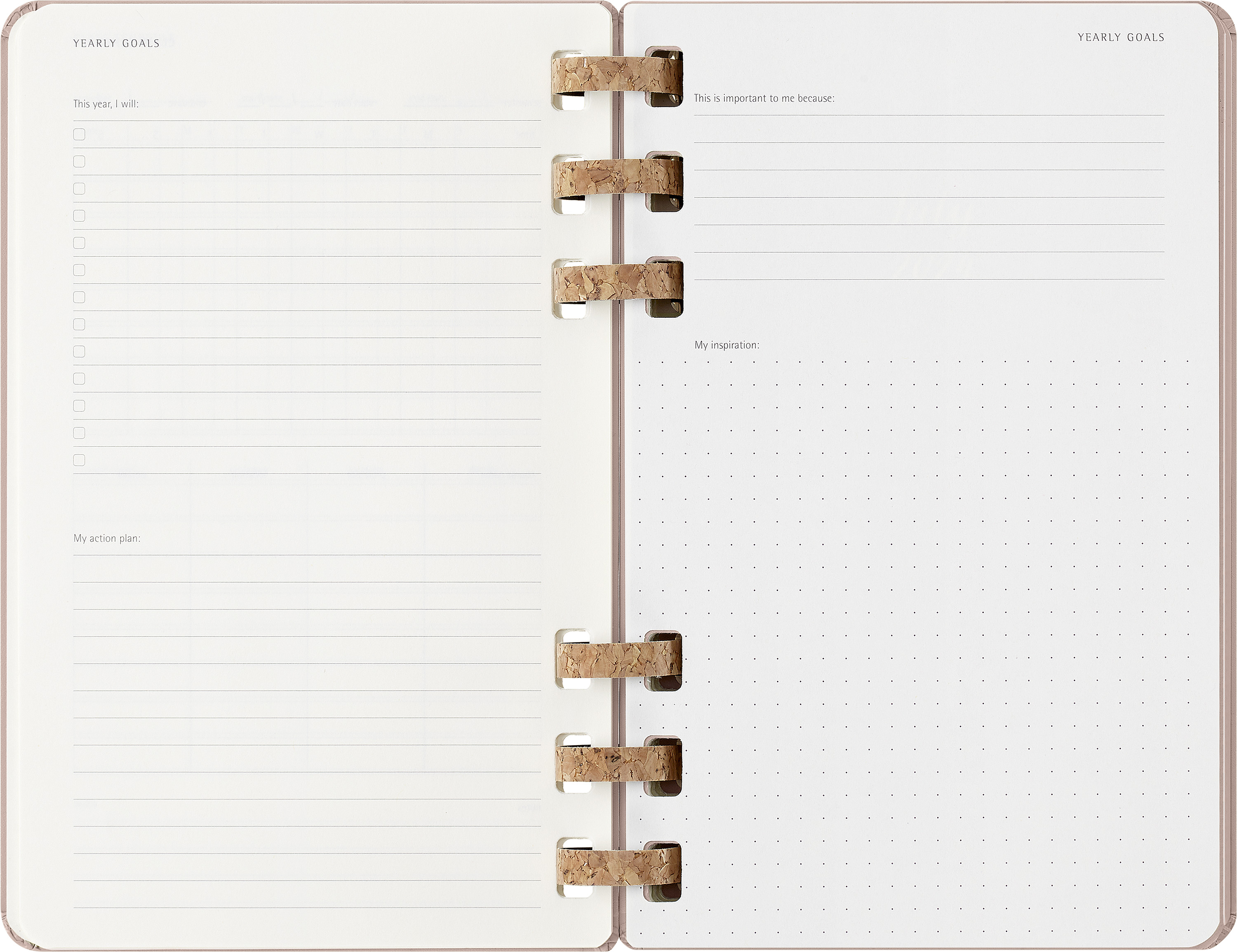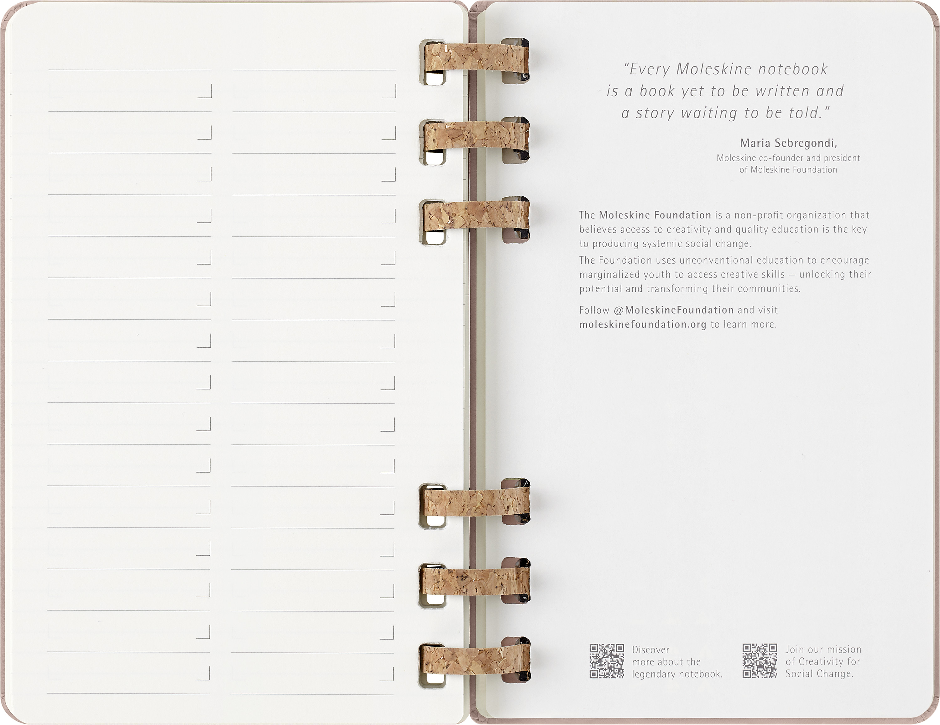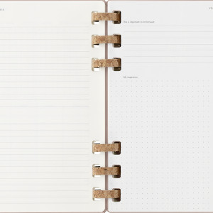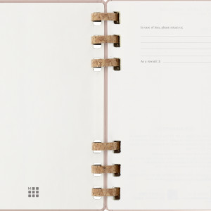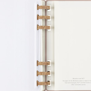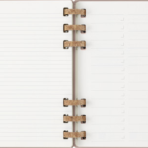 - robuste, aber flexible Spiralbindung aus Kork-Mix