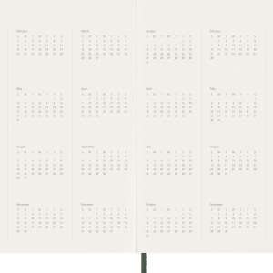 Wie alle unsere Planer beginnt auch der Essential Planner mit einer Seite für persönliche Daten und einer Übersicht über das laufende und das kommende Jahr, um den Überblick zu behalten. Ganz am Ende gibt es ausserdem freie Seiten für Notizen und Gedanken.