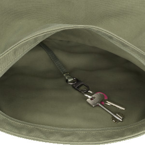 - diskreter Zugang zum Hauptfach über Reissverschluss auf der Rückseite