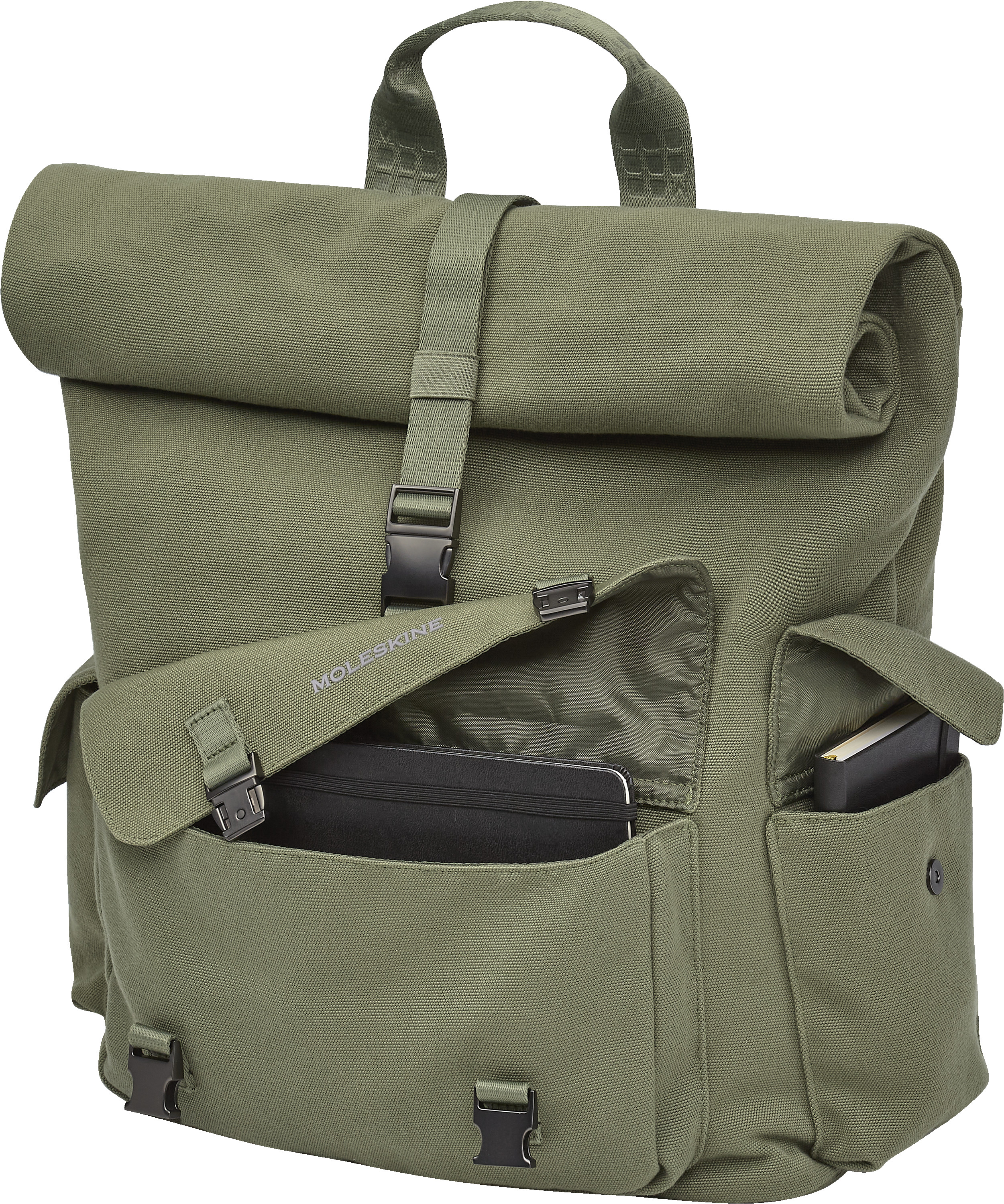 Entdecken Sie einen Rolltop Rucksack, der zu Ihrem Leben passt, wohin es Sie auch führt. Er wurde in Anlehnung an die Geschichte des legendären Notizbuchs entworfen und verfügt über Fächer für Moleskine Notizbücher und Kalender in den Grössen Pocket und Large sowie ein gepolstertes Gerätefach für Ihren Laptop und weitere Fächer und Taschen für Brille und Stift.