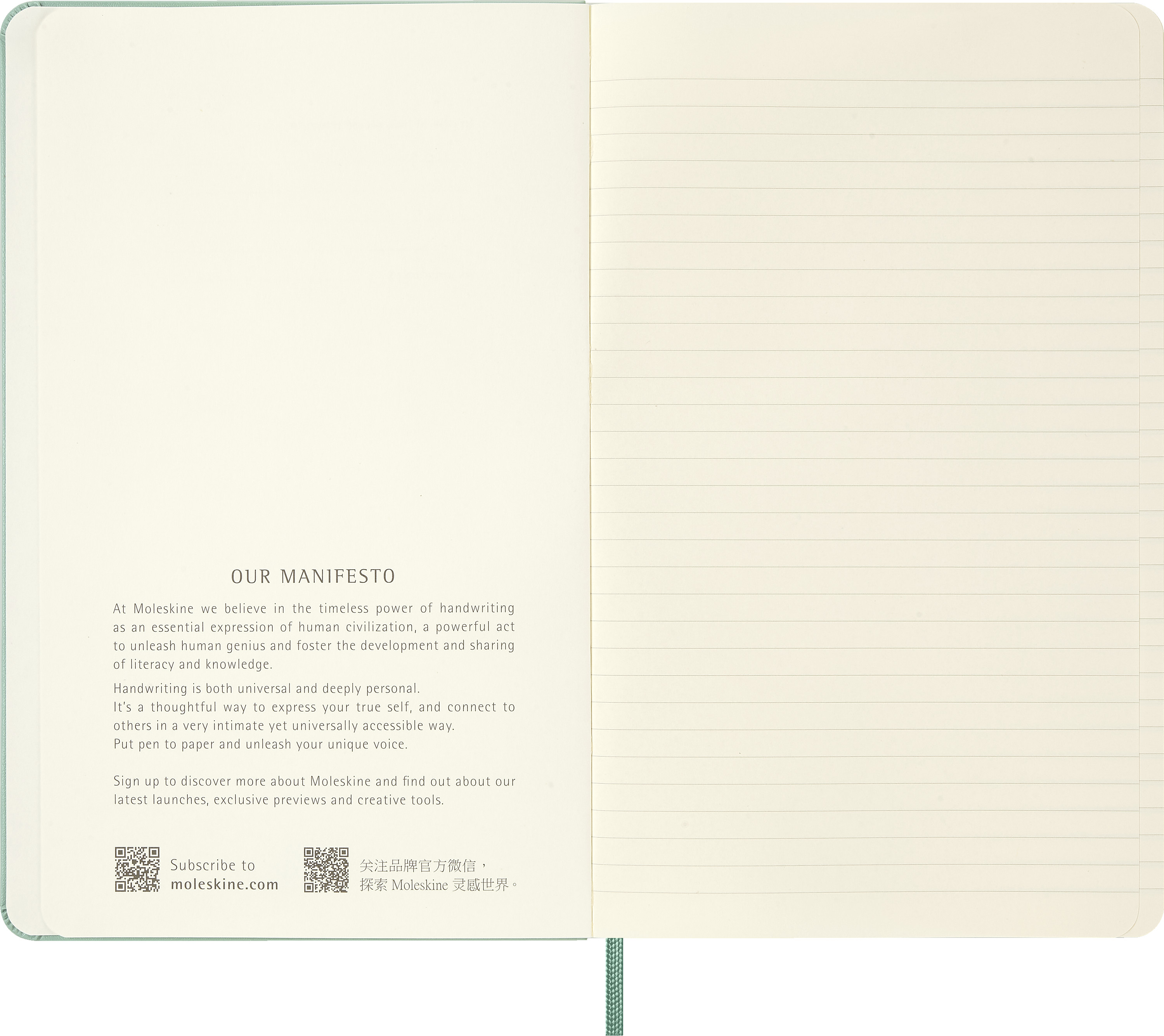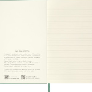 Dieses neue Classic Notizbuch mit linierten Seiten in der Saisonfarbe Salbeigrün verleiht eine frische, leichte Note und feiet die transformative Kraft, Gedanken mit Stift und Papier festzuhalten.