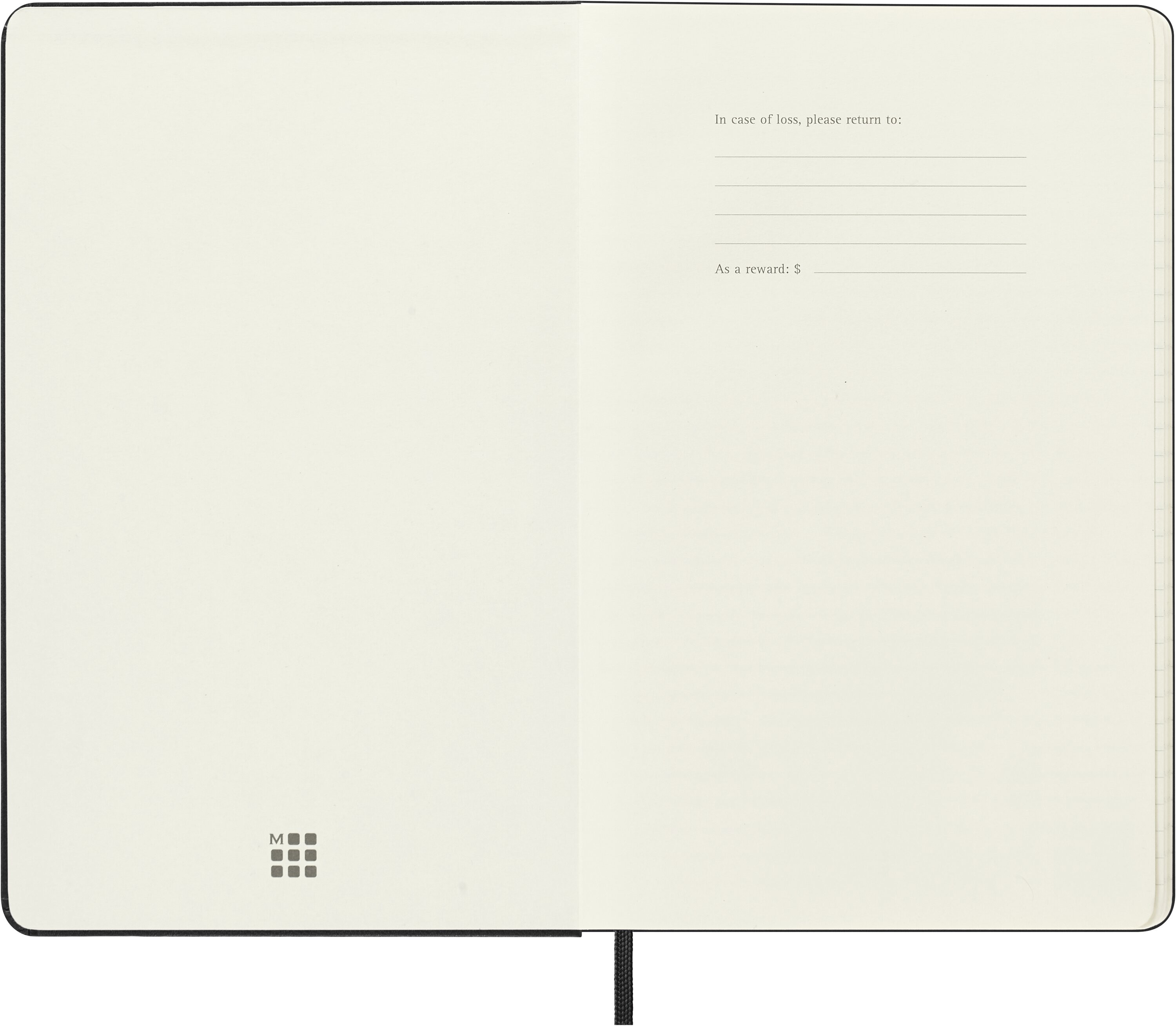 - fester Einband mit abgerundeten Ecken, Gummiband zum Verschliessen und Lesezeichenbändchen