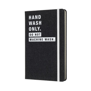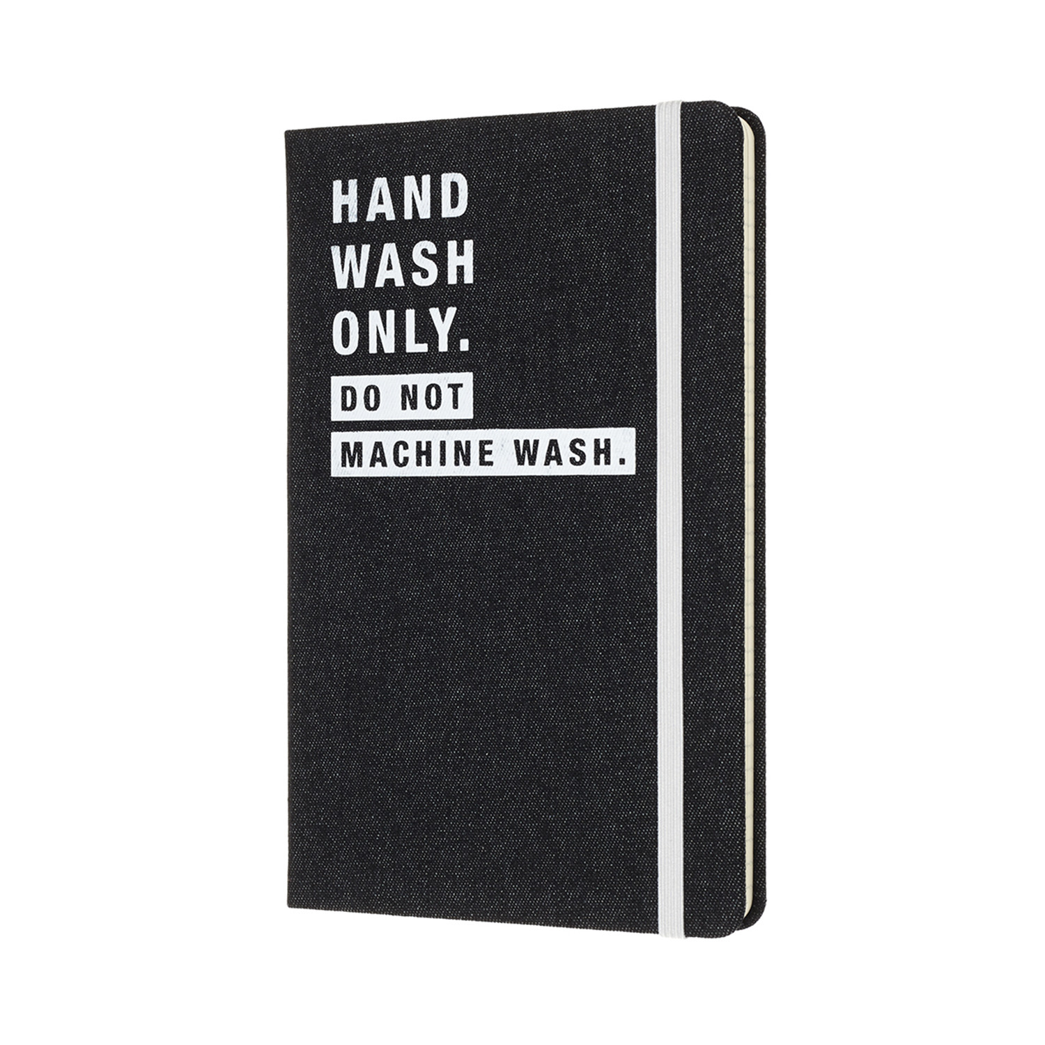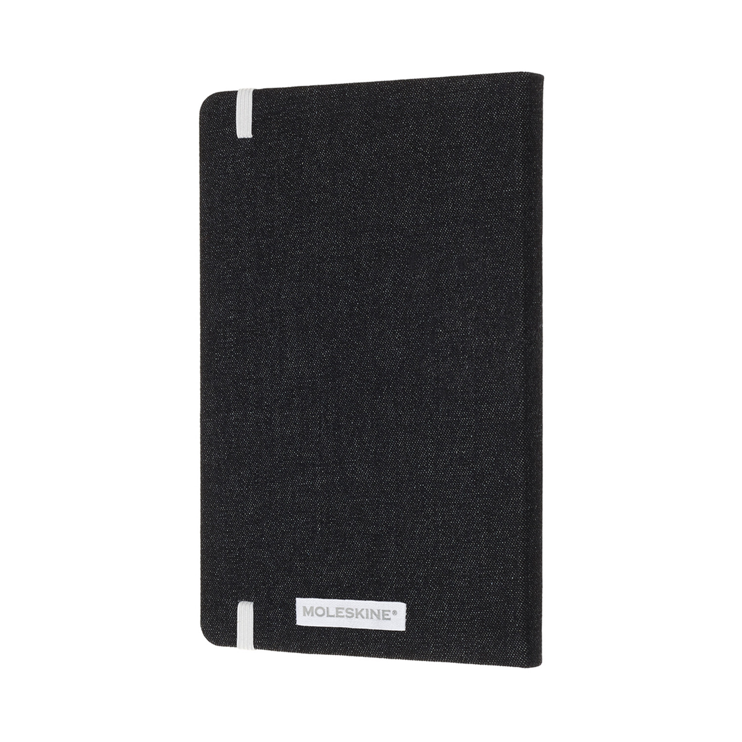 - Fester Denim-Einband mit abgerundeten Ecken und Gummiband zum Verschliessen