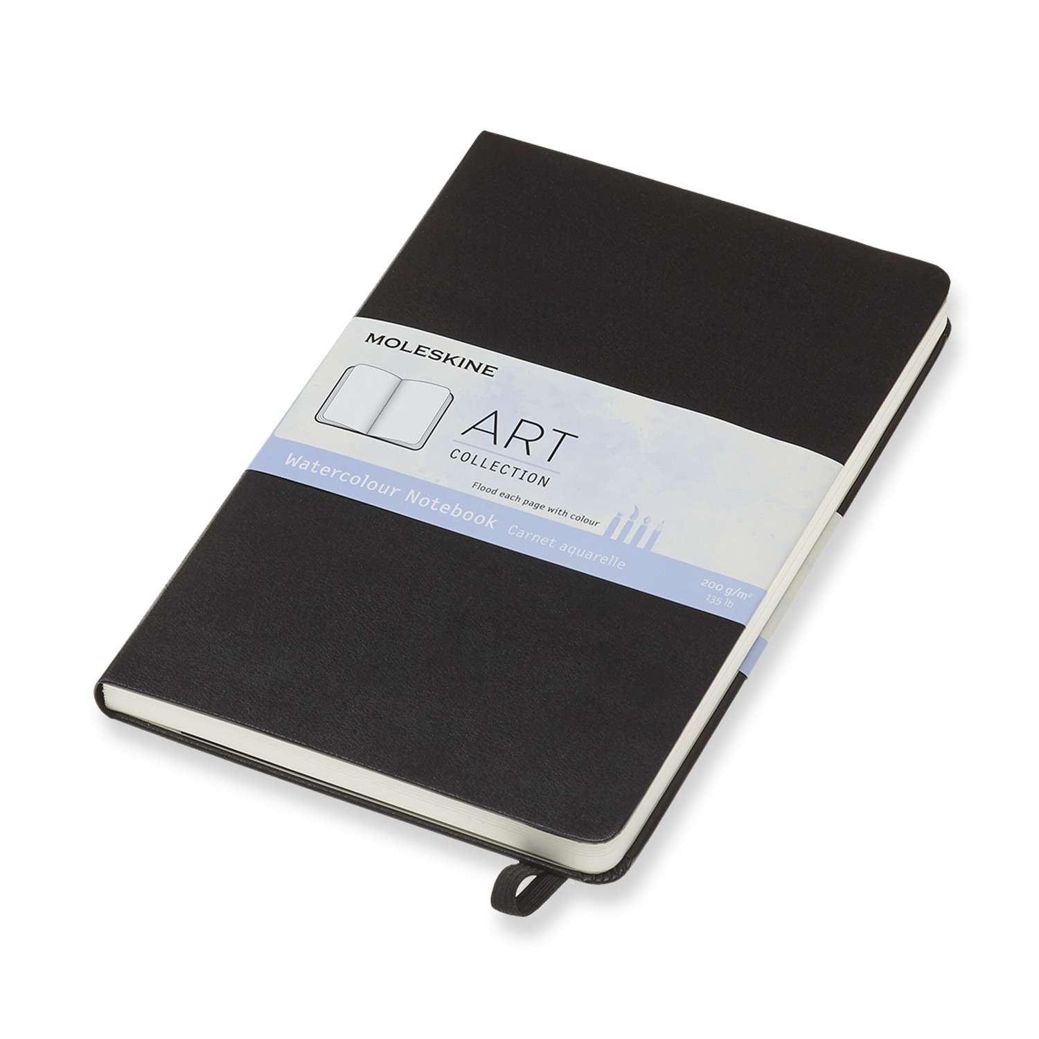 Wie die Classic Notizbücher mit festem Einband und abgerundeten Ecken gibt es auch dieses Watercolour Notebook mit einem Gummiband zum Verschliessen, einer Falttasche am hinteren Buchrücken, mit 200 g/m2 Aquarellpapier (kaltgepresst, mit 25% Baumwollfaseranteil und säurefrei), Vorder- und Rückseite haben eine identische Papieroberfläche und ist besonders geeignet für Farben mit hohem Wasseranteil sowie den Moleskine Aquarellstiften.