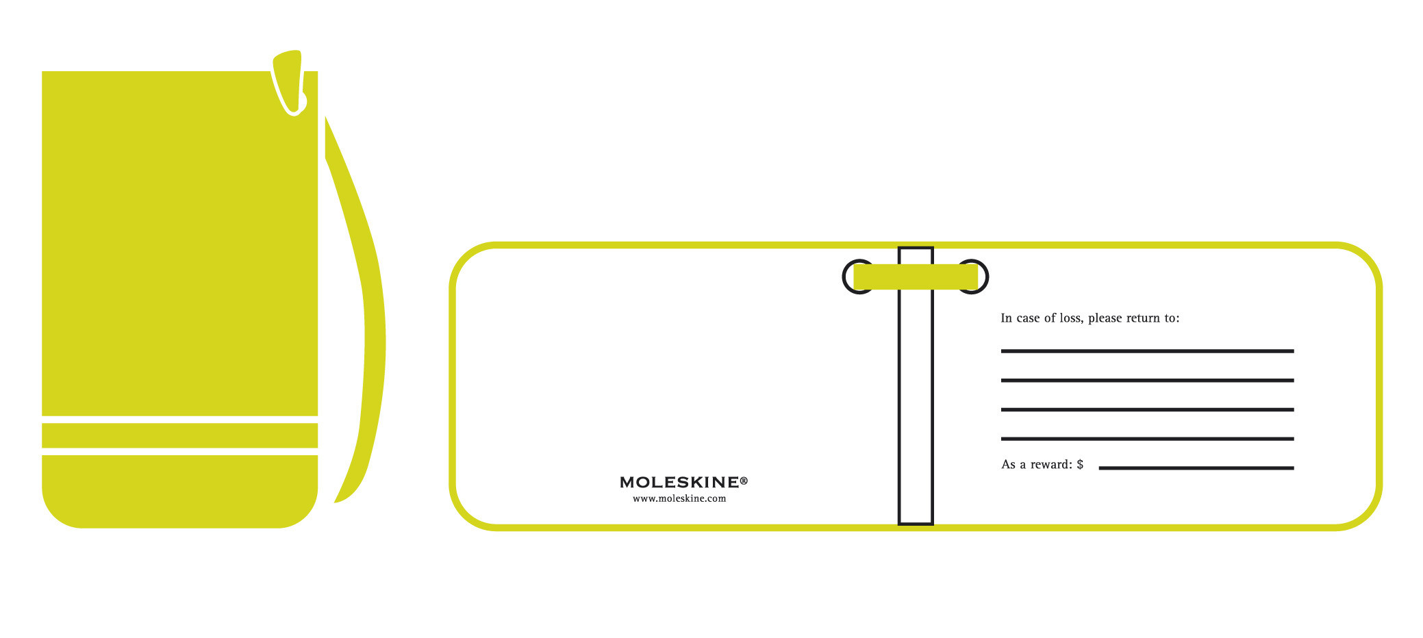 Gepäckanhänger in lemongrün. Inspiriert vom klassischen Moleskine-Look, mit Platz für Name und Adresse.
