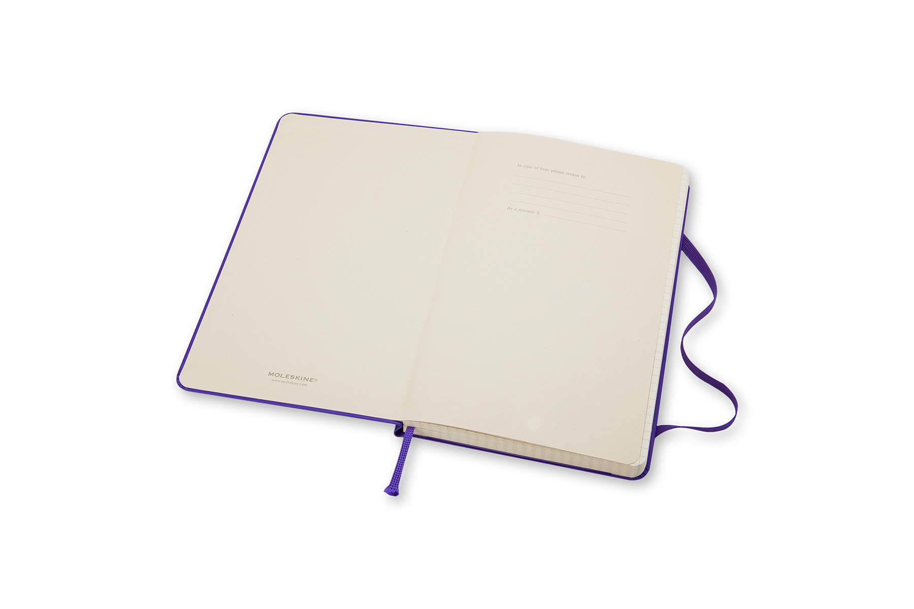 - Fester Einband mit abgerundeten Ecken und Gummiband zum Verschliessen